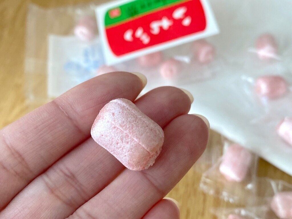 個包装を開けると甘い苺の香りがふわり。口に入れると優しい甘さといちごの甘酸っぱさがひろがります。香料っぽさがなくいちごの香りを楽しめるところがいいですね。