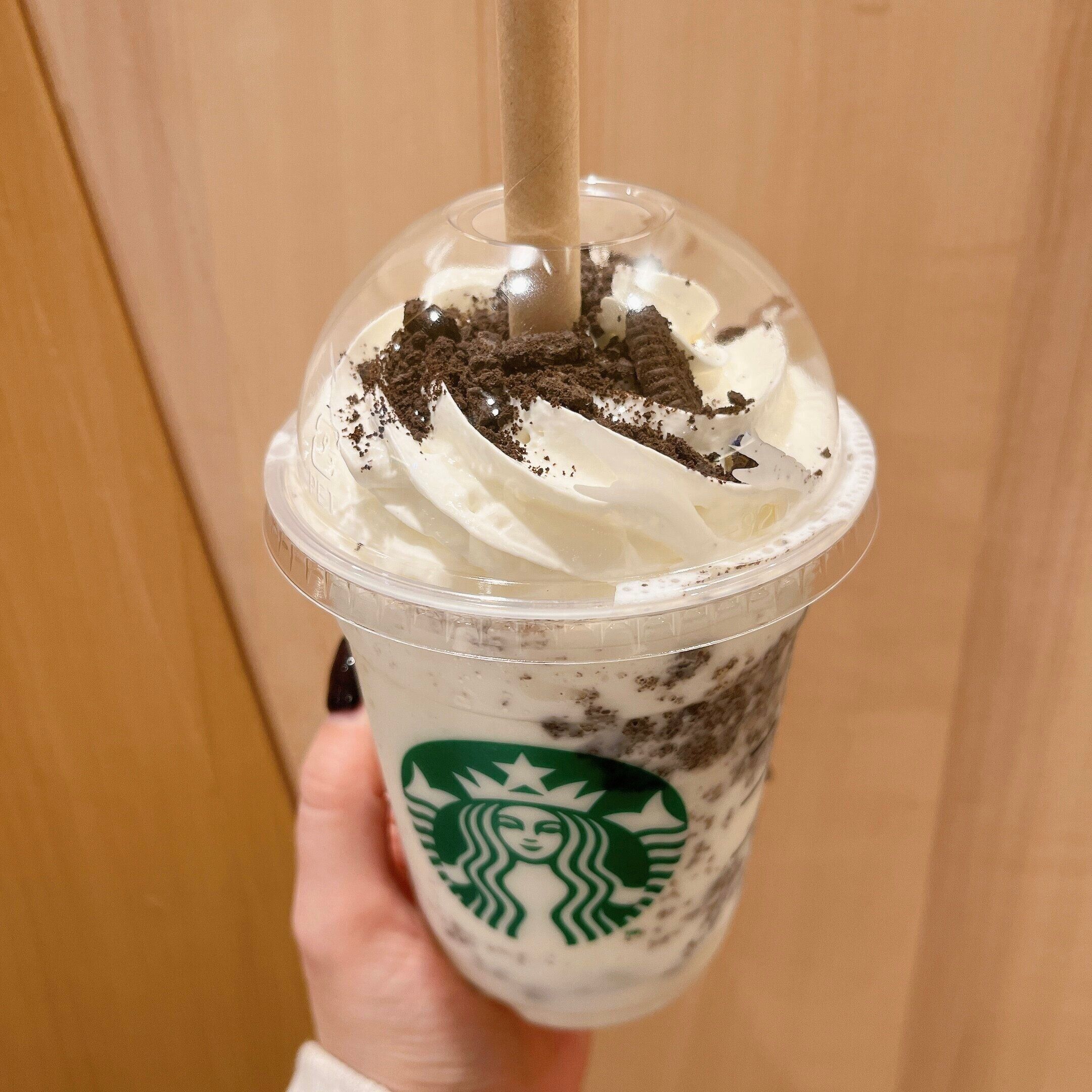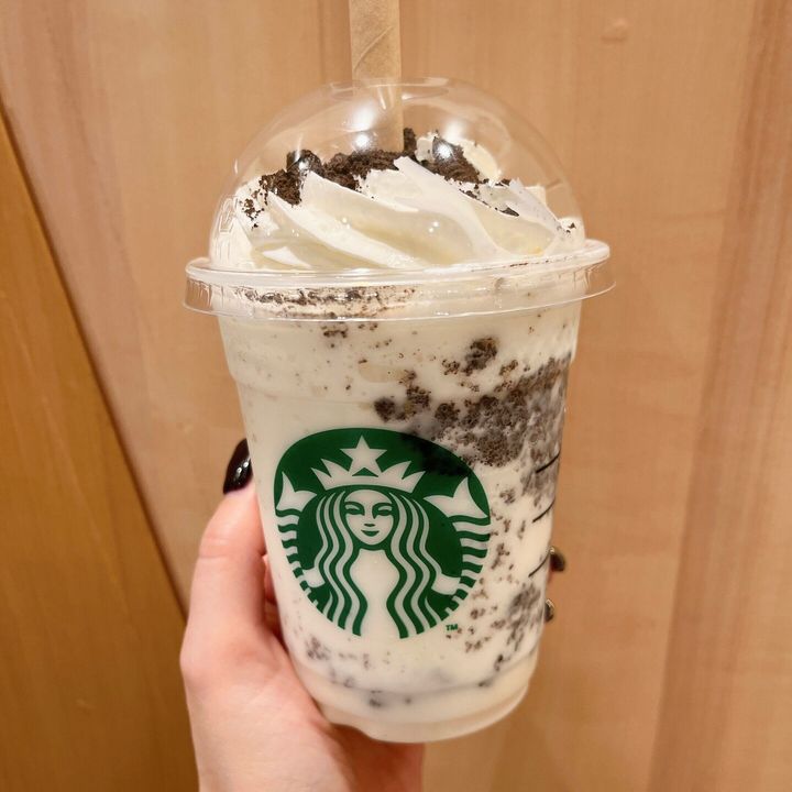ふんだんに入っているクラッシュココアクッキーは、サクサクでとっても香ばしく、ミルキーなフラペチーノが「クッキー&クリーム」のようなフレーバーに変身します。