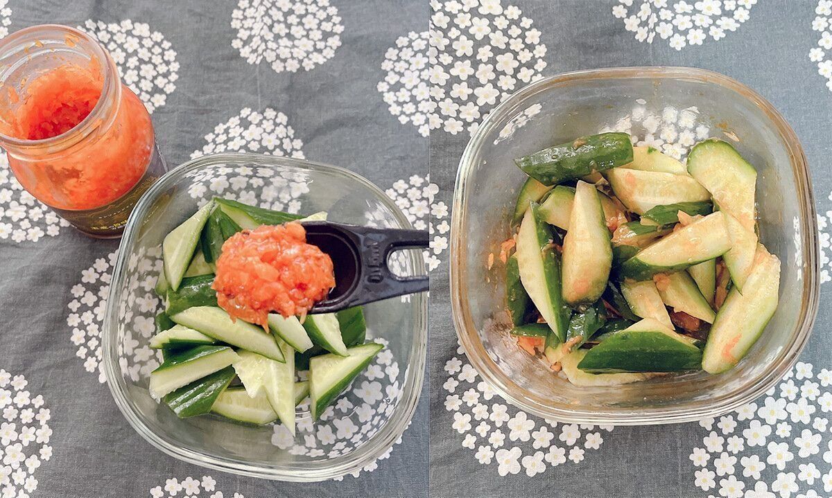 きゅうりを先に塩もみしているので、ちょうど良かったです。