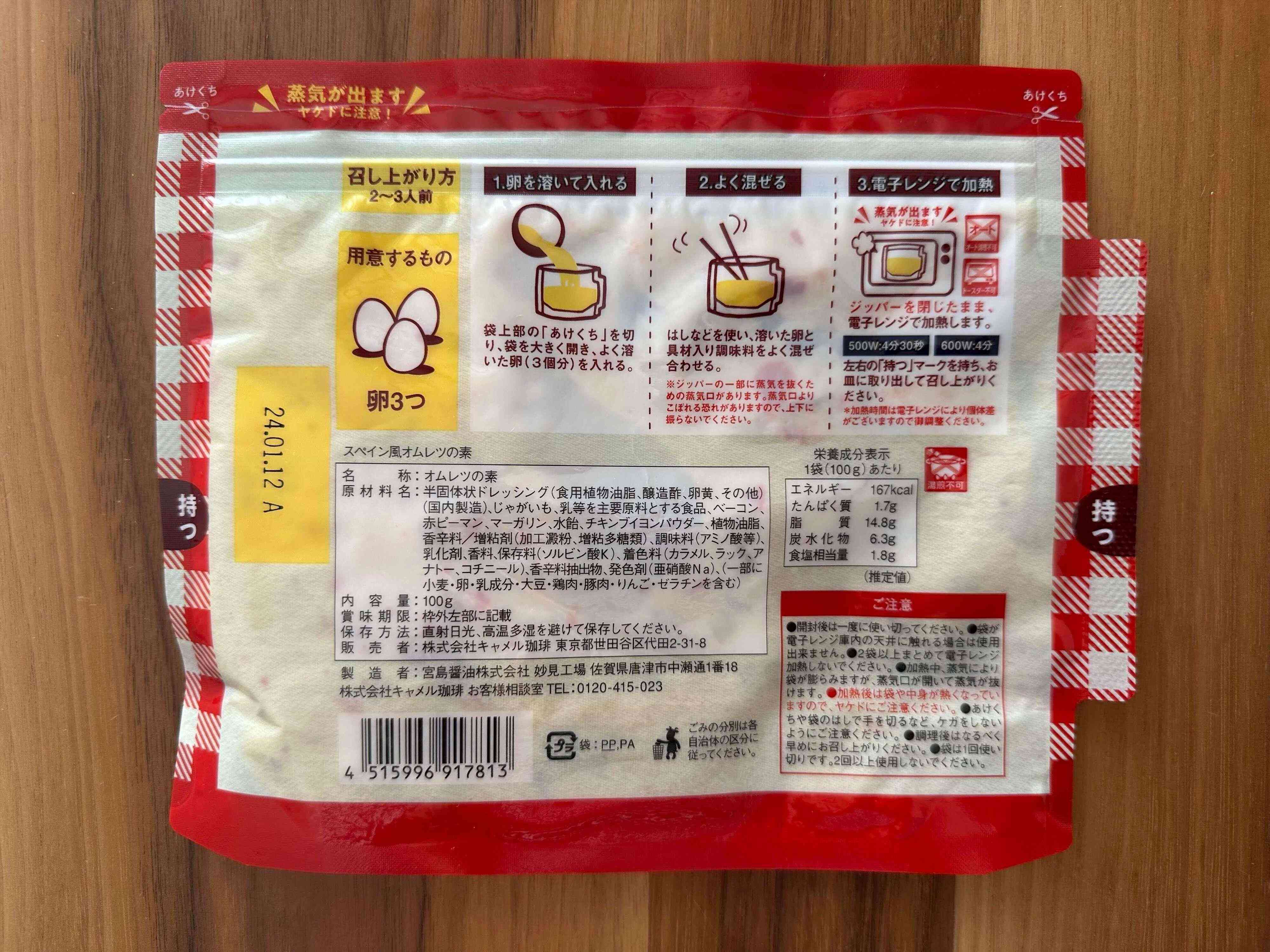どんなものなのかと袋の中身をのぞいてみると、マヨネーズのようなテクスチャー。パプリカとマヨネーズのよい香りがしますが、この時点ではオムレツになるなんて想像もつきません。