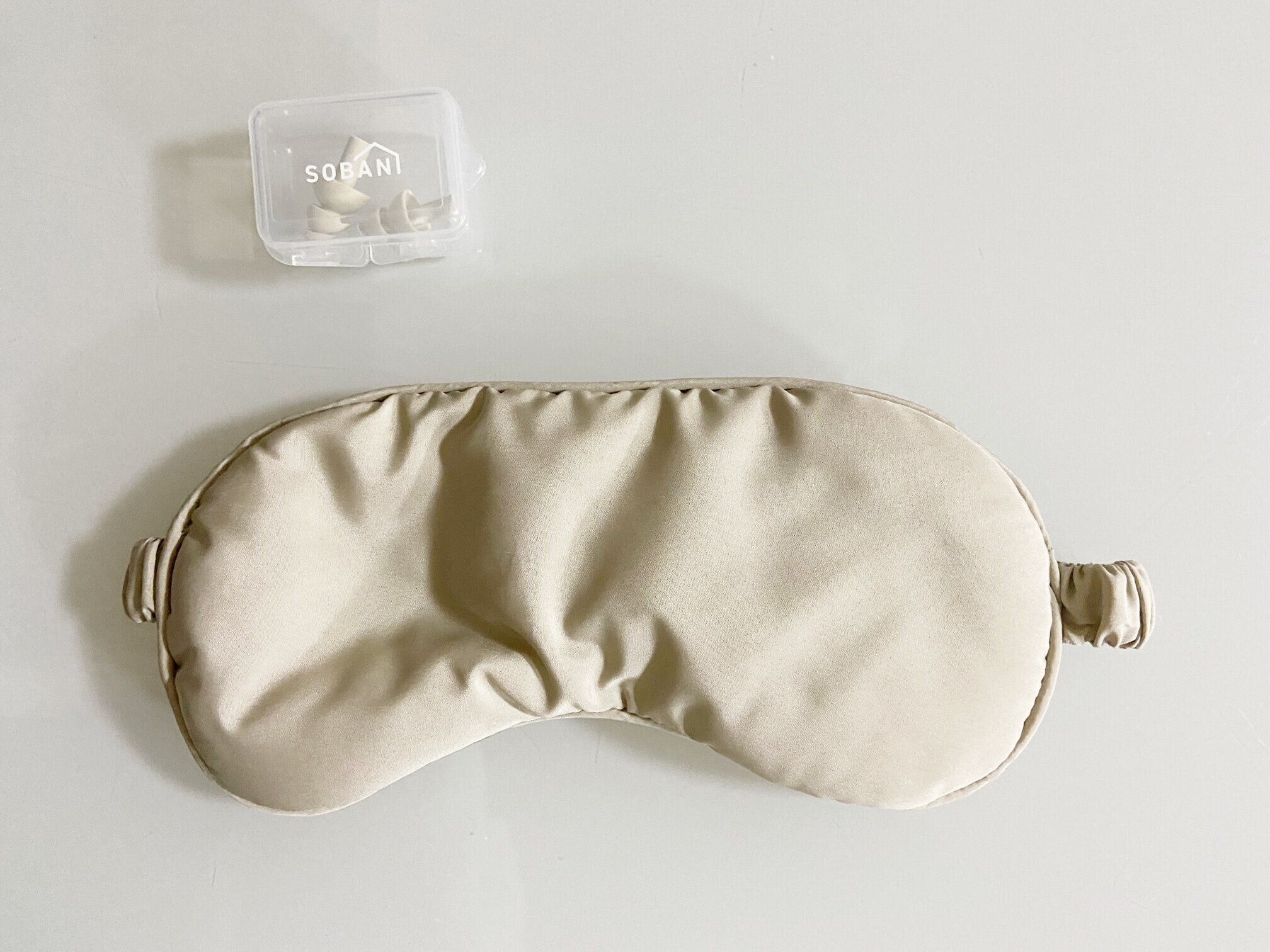 アイマスクはふわふわだけど軽くて肌触りも◎!程よい分厚さなので明かりもシャットダウンしてくれます。かわいらしいベージュで見た目もおしゃれに作られているのはさすが3COINSですよね。