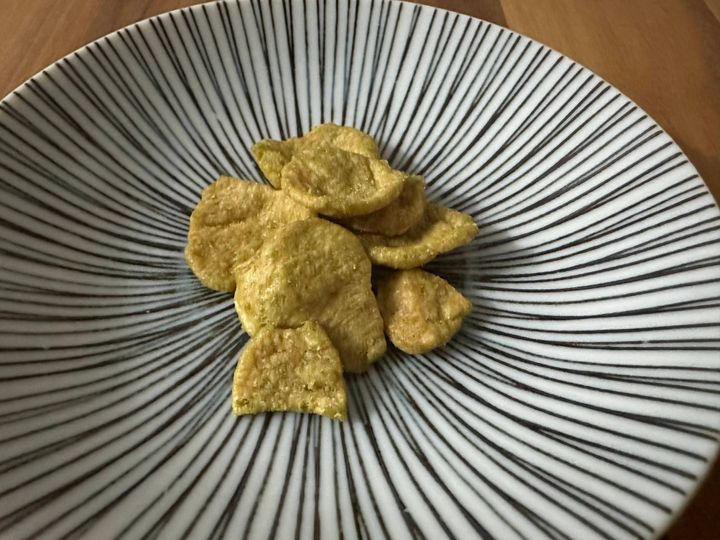 コーンポタージュのような甘い風味とスナック特有のしょっぱさが絶妙で、ついつい進んでしまうおいしさ。一口サイズのチップスが食べやすく、ちょっとした間食にもピッタリですよ。