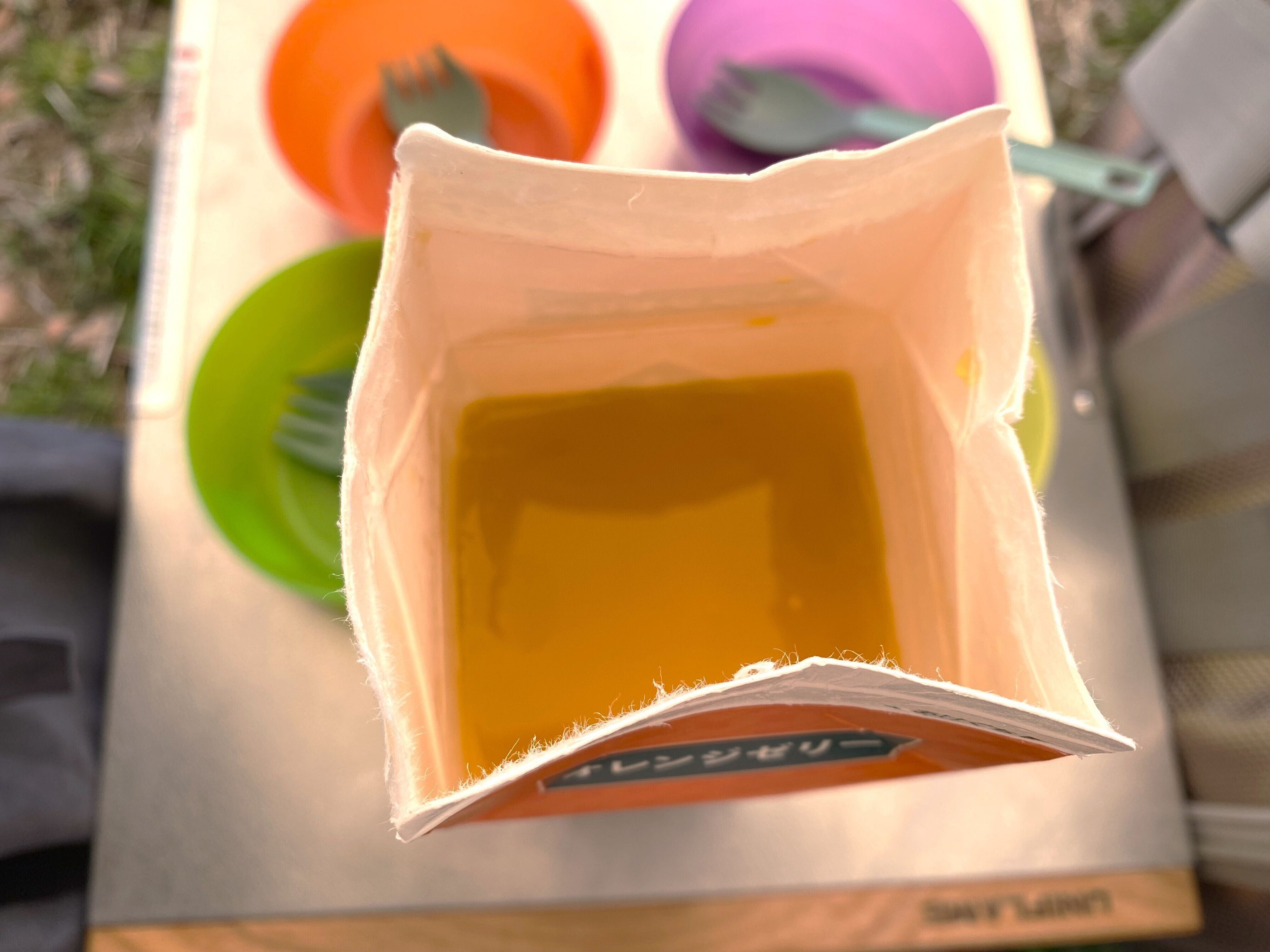 クーラーボックスではアイスが溶けてしまう事が多いので、そんな時、この紙パックゼリーが便利なんです!クーラーボックスに入れてお出かけすれば、溶ける心配もなくキンキンに冷えたゼリーが大容量で食べられ、大人数でもシェアできる!カップ型ではないのでクーラーボックスにもきっちり入ってくれます。また、紙パックなので食べた後は小さくたためて、アウトドアにはピッタリなんです。