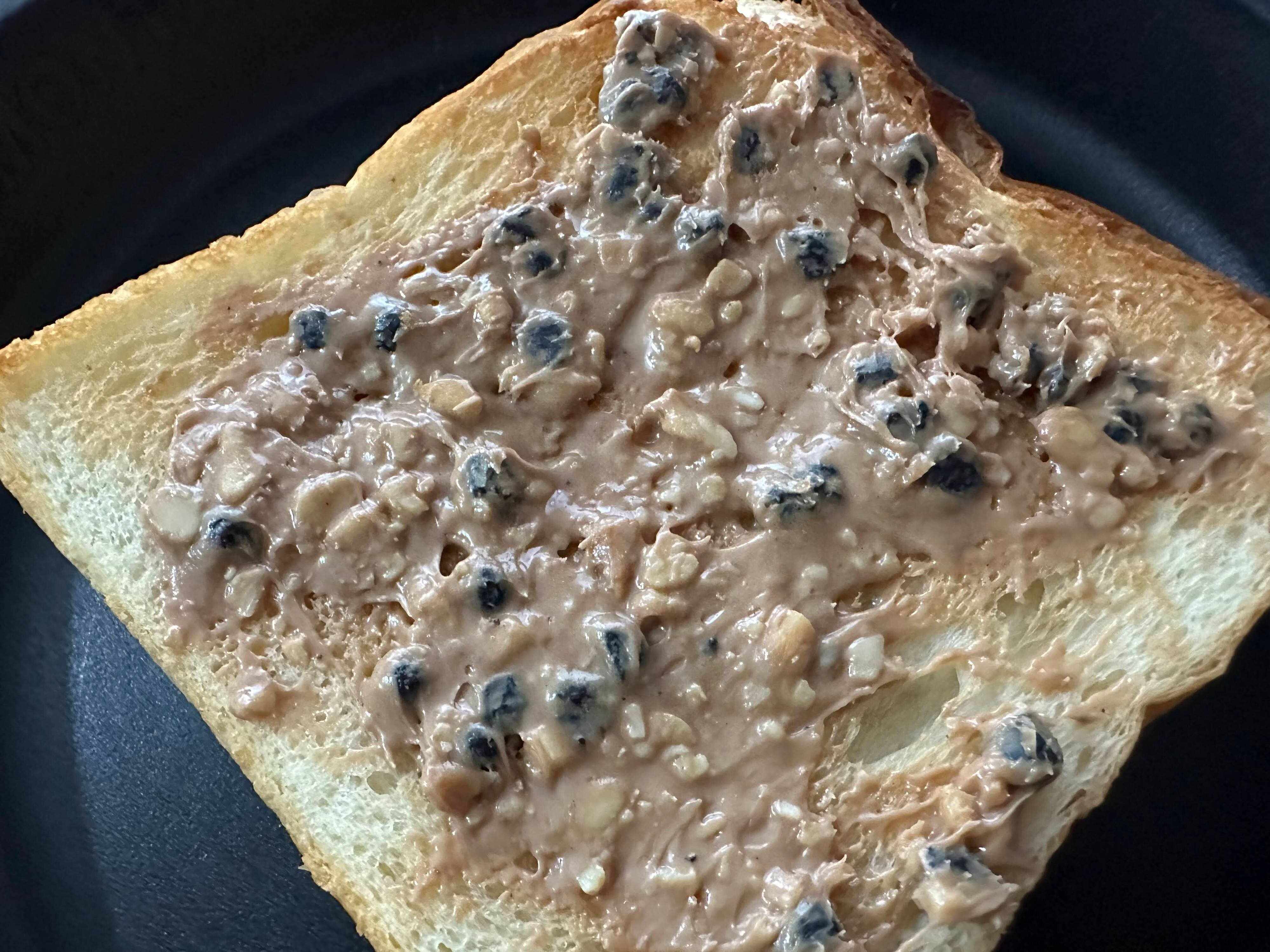 とことん食感を楽しみたいかたは王道にトーストに塗るのがおすすめ。トーストのサクサクと、クッキー&ナッツのザクザク食感がクセになるおいしさです。