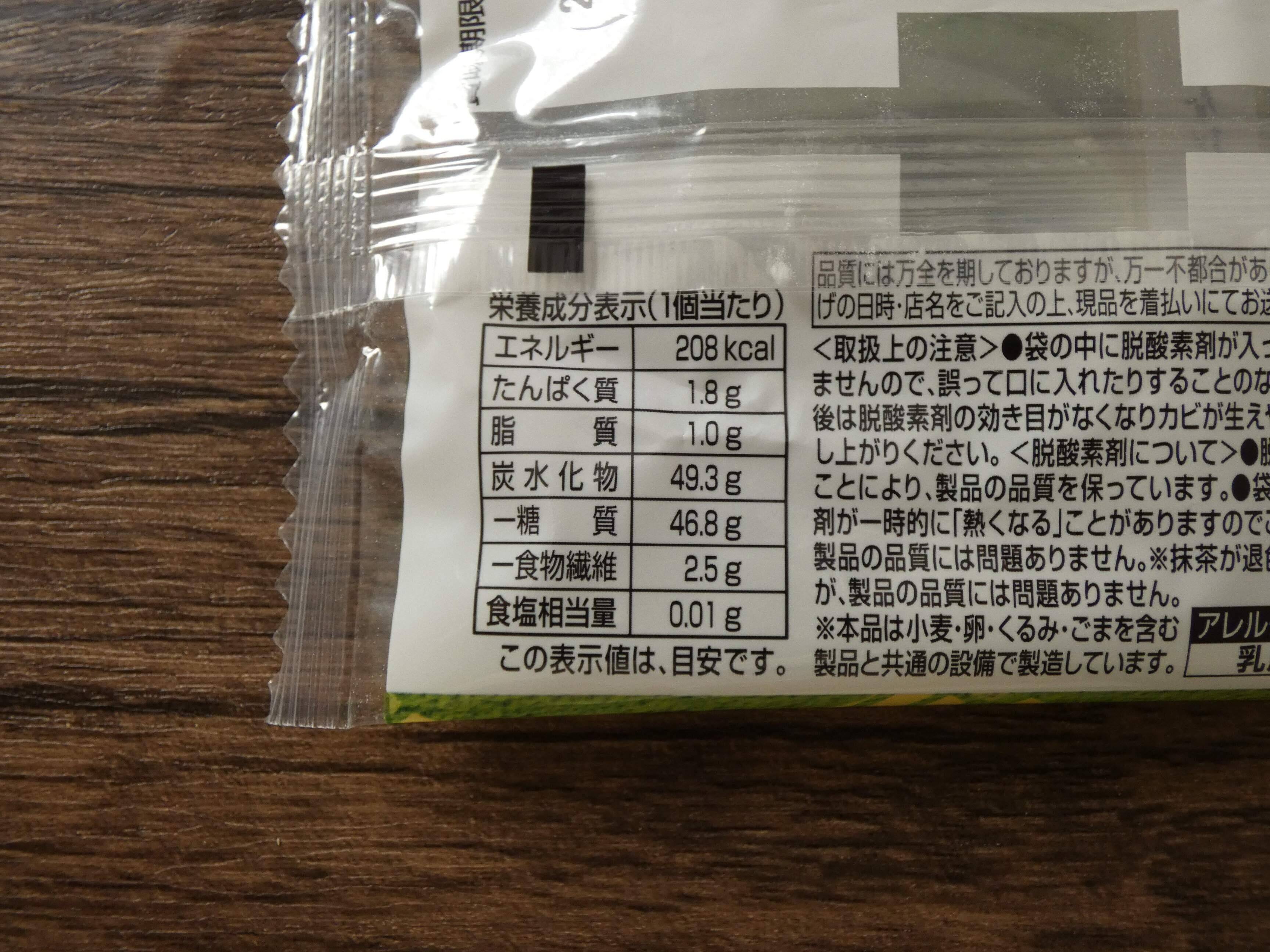 栄養成分表示を見ると1個のエネルギーは208kcal。