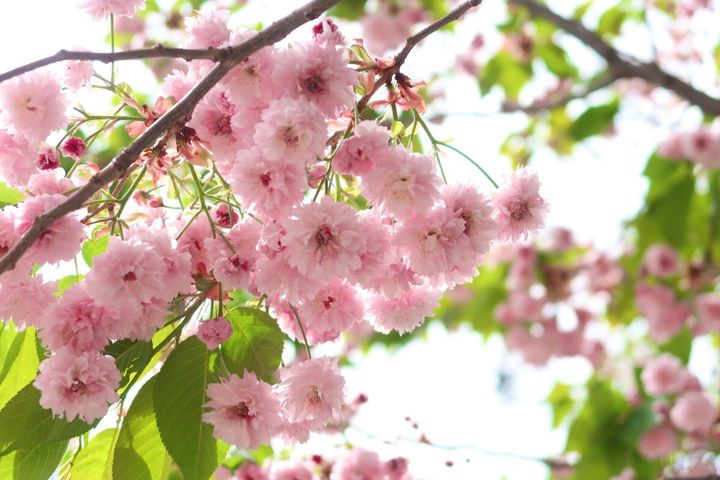 その名の通り、鮮やかなピンクで何重にも重なった花びらが華やかな桜です。