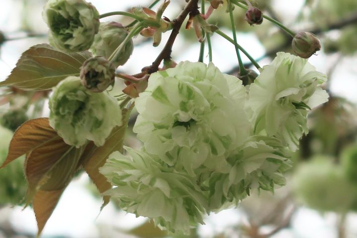 「サトザクラ」の園芸品種で、白色の八重咲き。