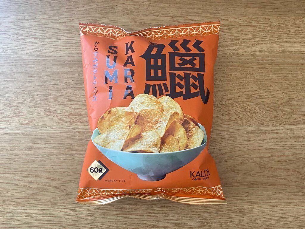 カルディのお菓子コーナーに新商品の「からすみポテトチップス」が登場しました。
