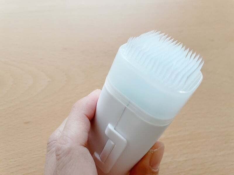 ブラシキャップ付きなので収納にも困りません。使う時はせっけんを塗ってそのまま揉みこんで洗っても十分ですがブラシでこすると更に汚れを簡単に掻き出すことができます!