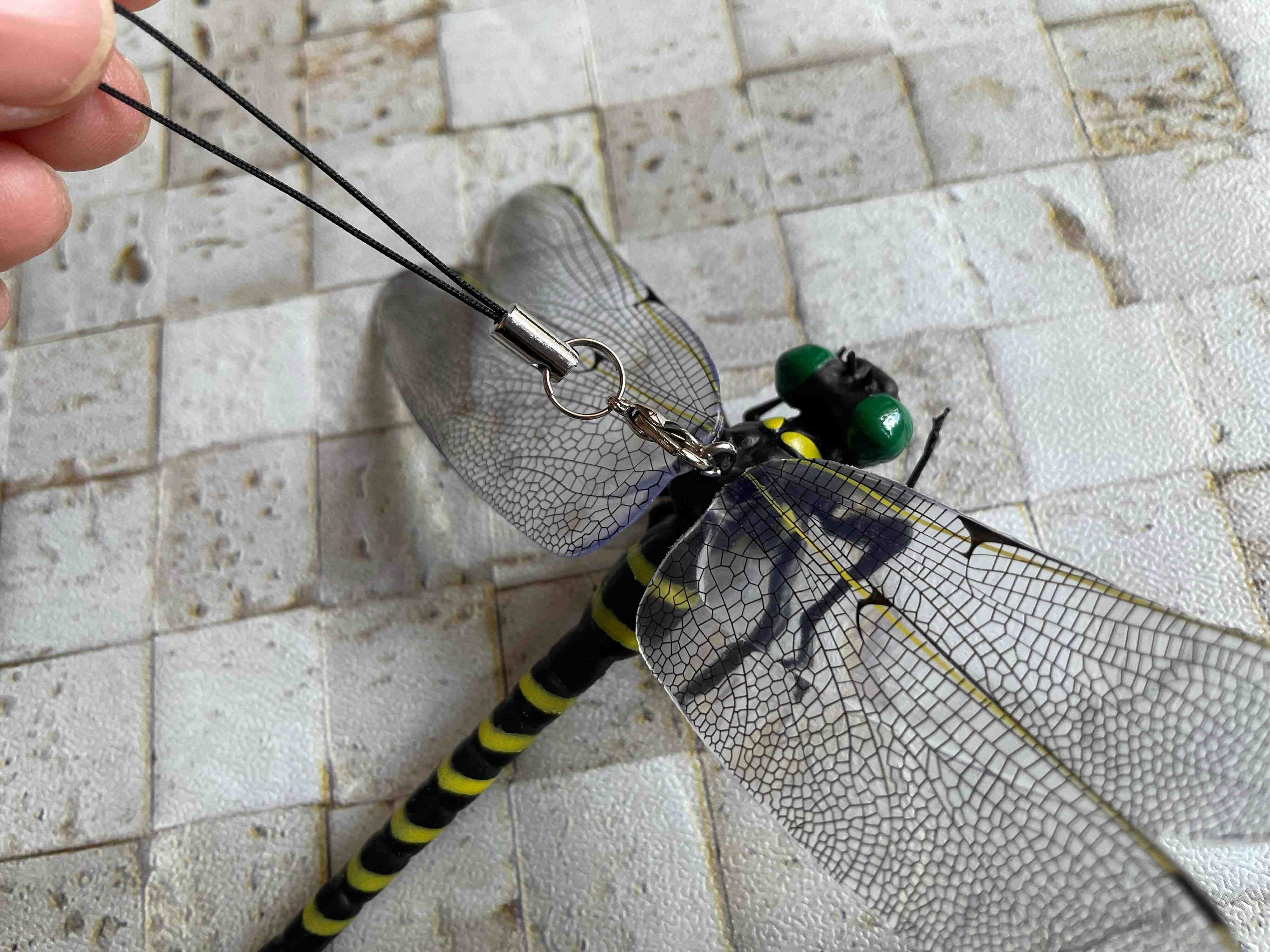 こちらのオニヤンマは、ストラップ金具と安全ピンの2WAYタイプ。