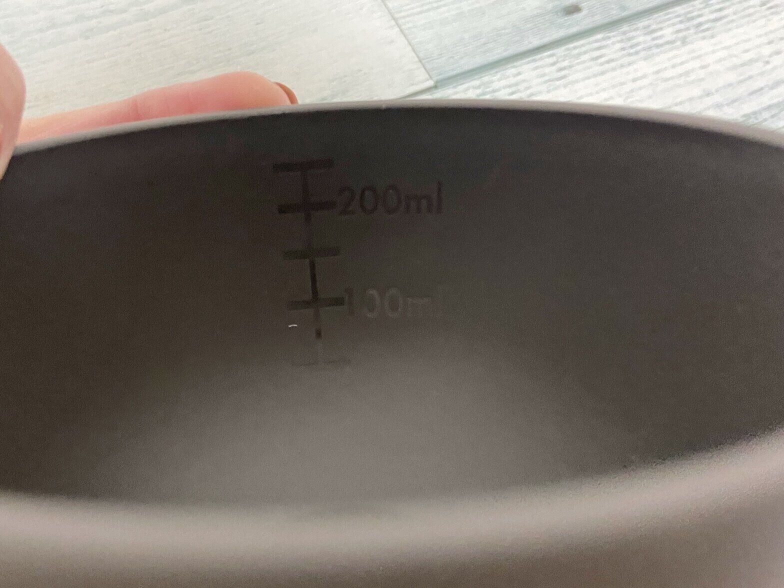 目盛りは50ml刻みで250mlまで量ることができるように印字されているほかに、50ml・120ml・160ml・180mlが量れるように目盛りが刻まれているのです。2パターンの目盛りがあるのは高ポイント!