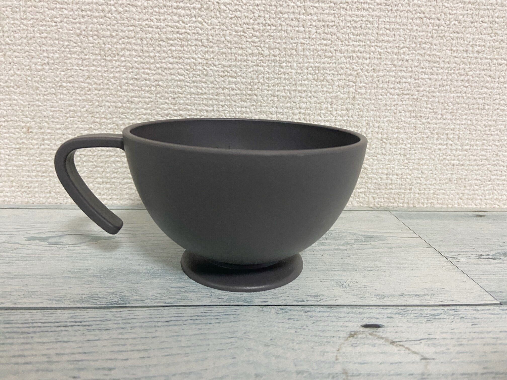 今回ご紹介する「スタッキング計量マグ」(330円)。筆者が購入したグレーの他にオレンジも販売されています。耐熱温度が140℃・耐冷温度が-20℃でレンジの使用も可能!(長時間の使用はお避けください。)食洗機にも対応しています。この一見シンプルなマグはおしゃれなだけでなく、ズボラ主婦にうれしい特徴があるのです。