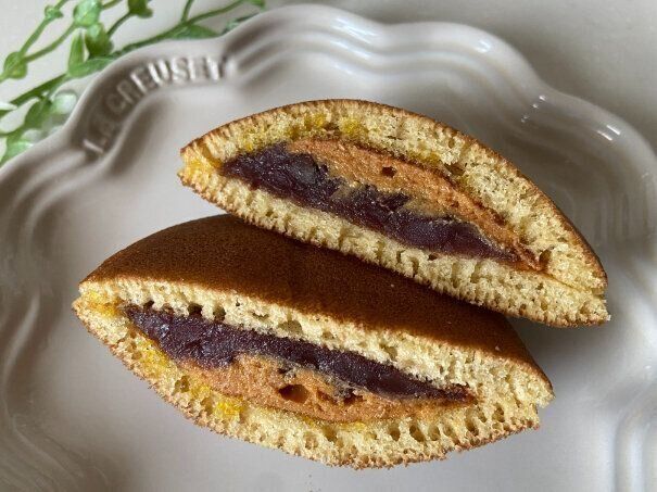 しっとりとしたどらやきの生地、甘く香ばしい香りが広がります。