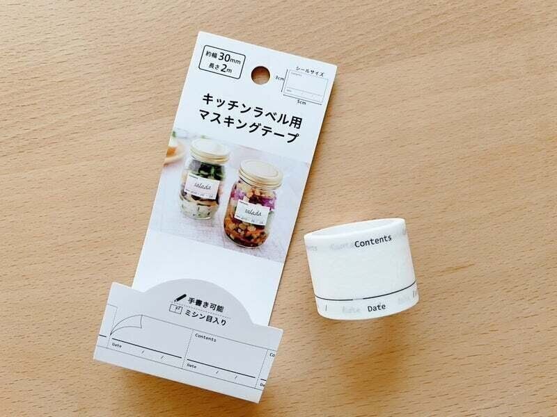 ラベル用のマステはコレと決めてリピ買いしているのが「キッチンラベル用マスキングテープ(110円)」。とっても使いやすい日付と中身が書けるタイプ。何より便利なのが1辺ごとにハサミ不要のミシン目が付いていることです。