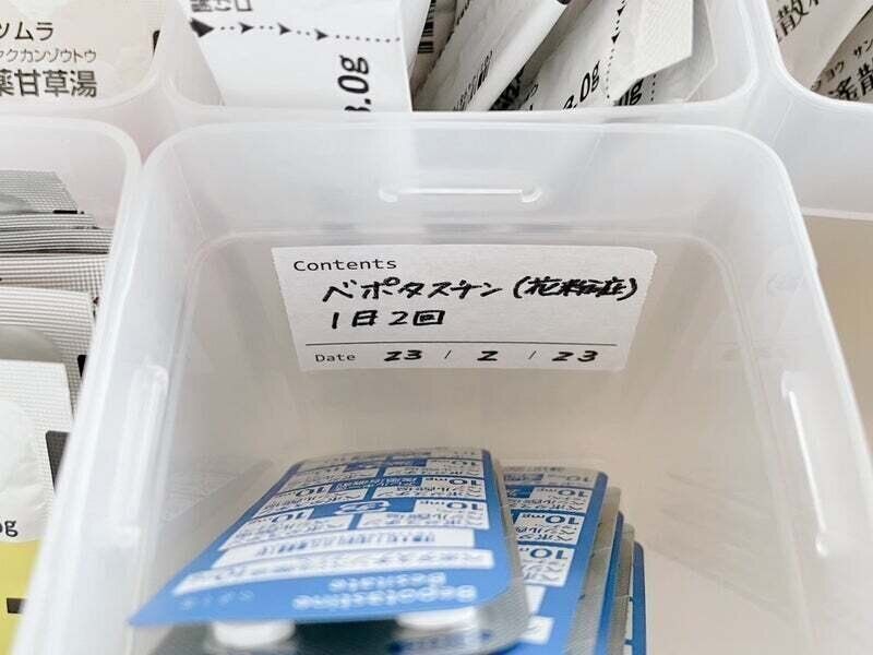 わが家では中身がよく入れ替わるお薬収納ラベルに活用。油性ペンと一緒にお薬ボックスの中にセットしています。服用している時は覚えていても、時期を過ぎると何の薬だったか意外とわからなくなってしまうもの。貼りやすく剥がすのも簡単!とってもオススメのラベル用マステです。
