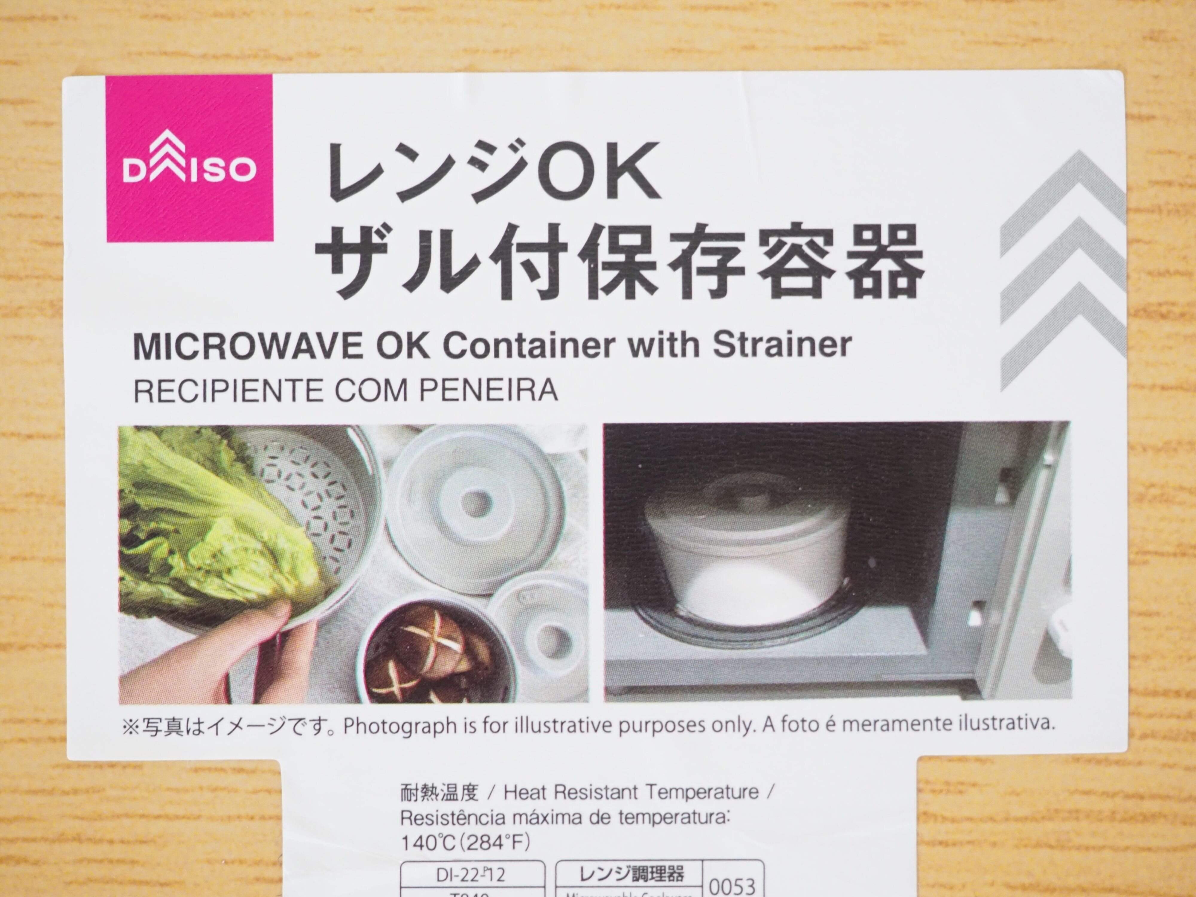 そんな私にぴったりな商品をダイソーで発見!その名も「レンジOKザル付保存容器」です。機能がそのまま商品名になっているという合理性にも惹かれ、迷わず手に取ってレジへ。実際に使ってみた感想をお届けします。