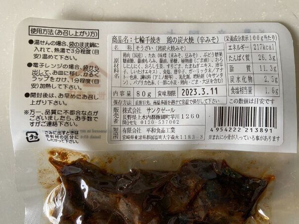 今回紹介するのは「国産鶏の炭火焼き 辛みそ」(購入時:454円)です。