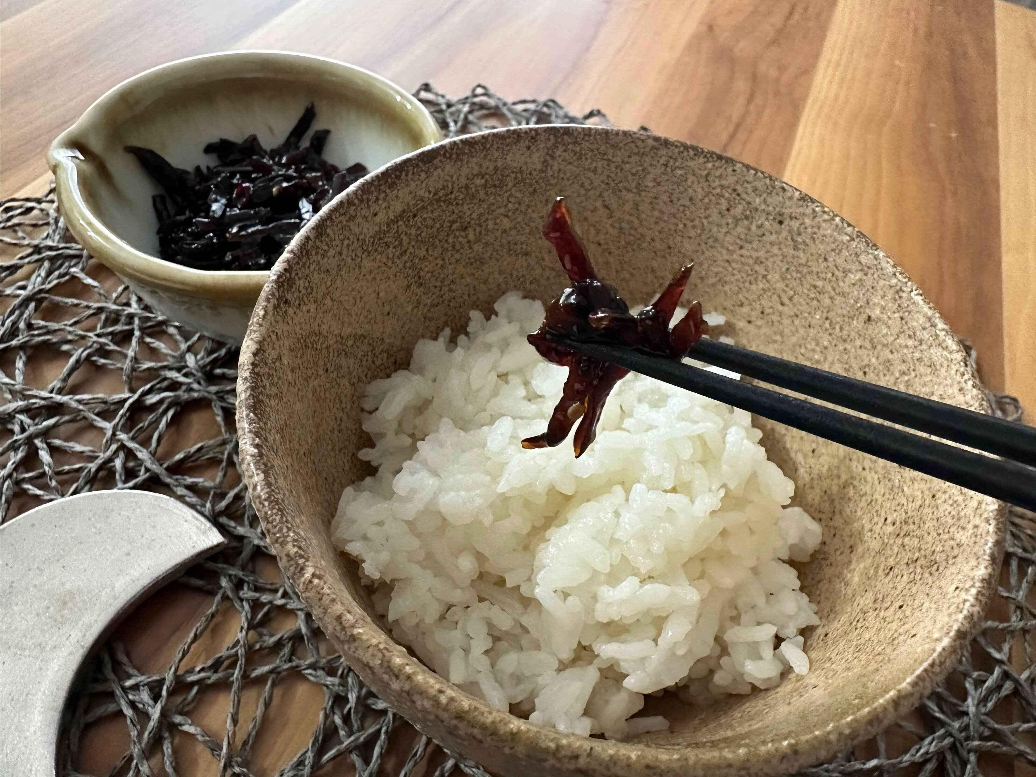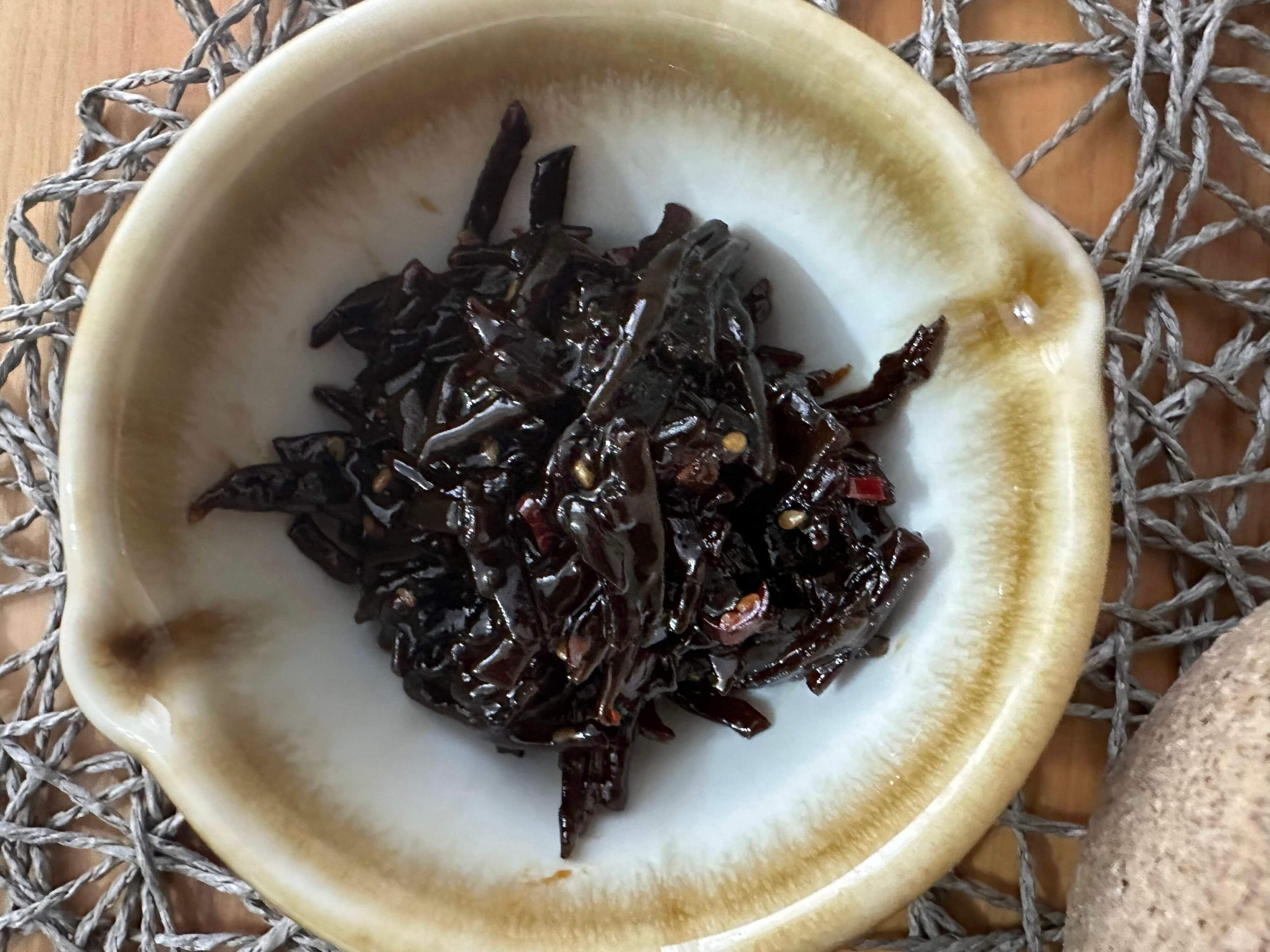 昆布の柔らかい佃煮とはまた違ったきくらげのコリコリ食感も楽しくて美味。1袋しか買わなかったことを後悔するおいしさです…!