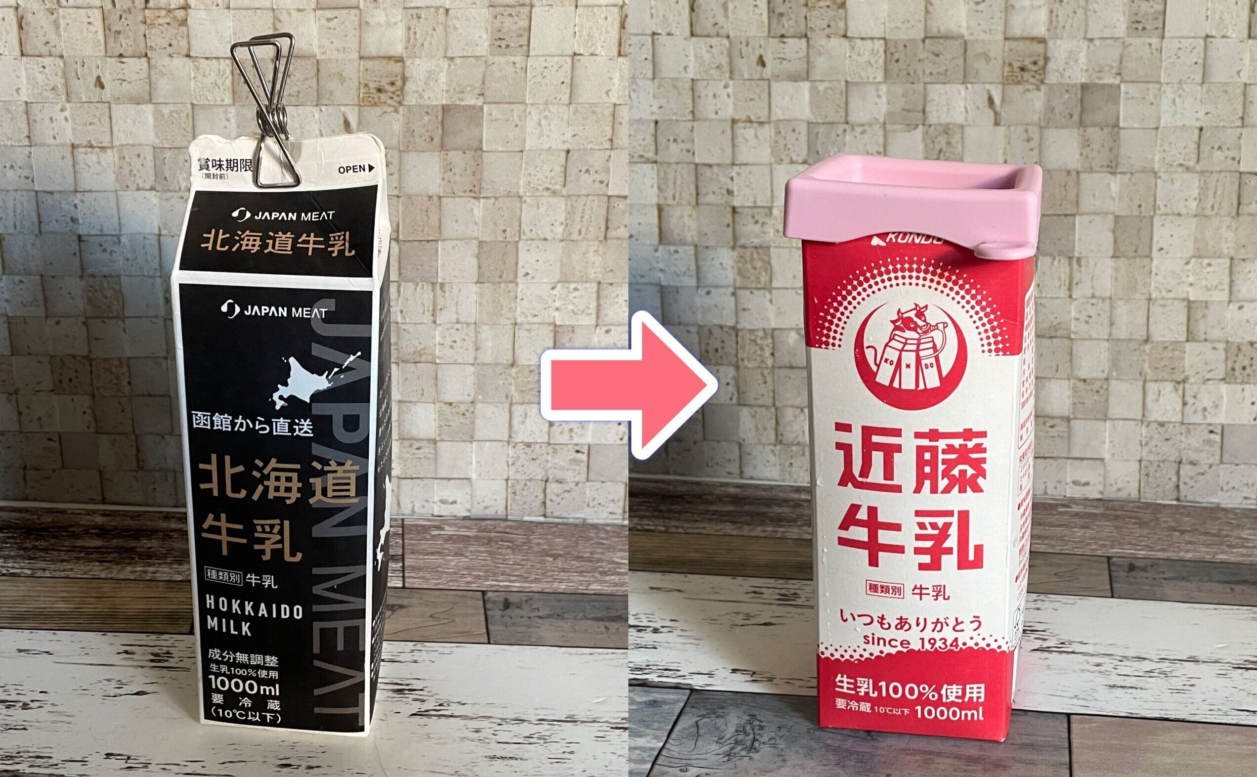 今まで「牛乳パックのフタがあったら便利なのにな~」と思っていたのに「でも見たことないし、ないよね?」と探していなかったのです。
