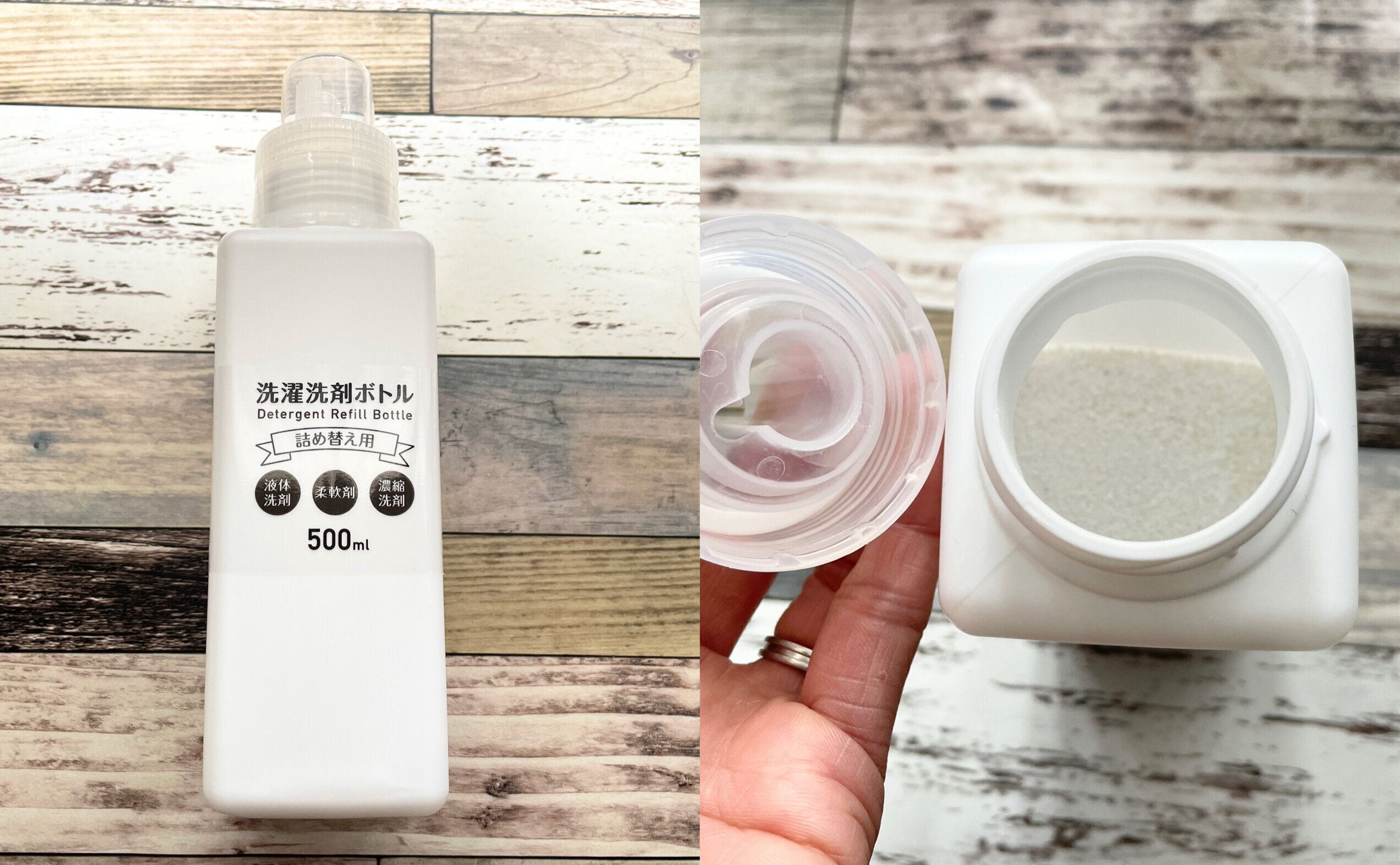 「洗濯洗剤のように蓋が計量カップだったらいいのでは?ということは、洗濯洗剤のボトルを使ったらいいんだ!」と思いつき、すぐにセリアで買ってきました。