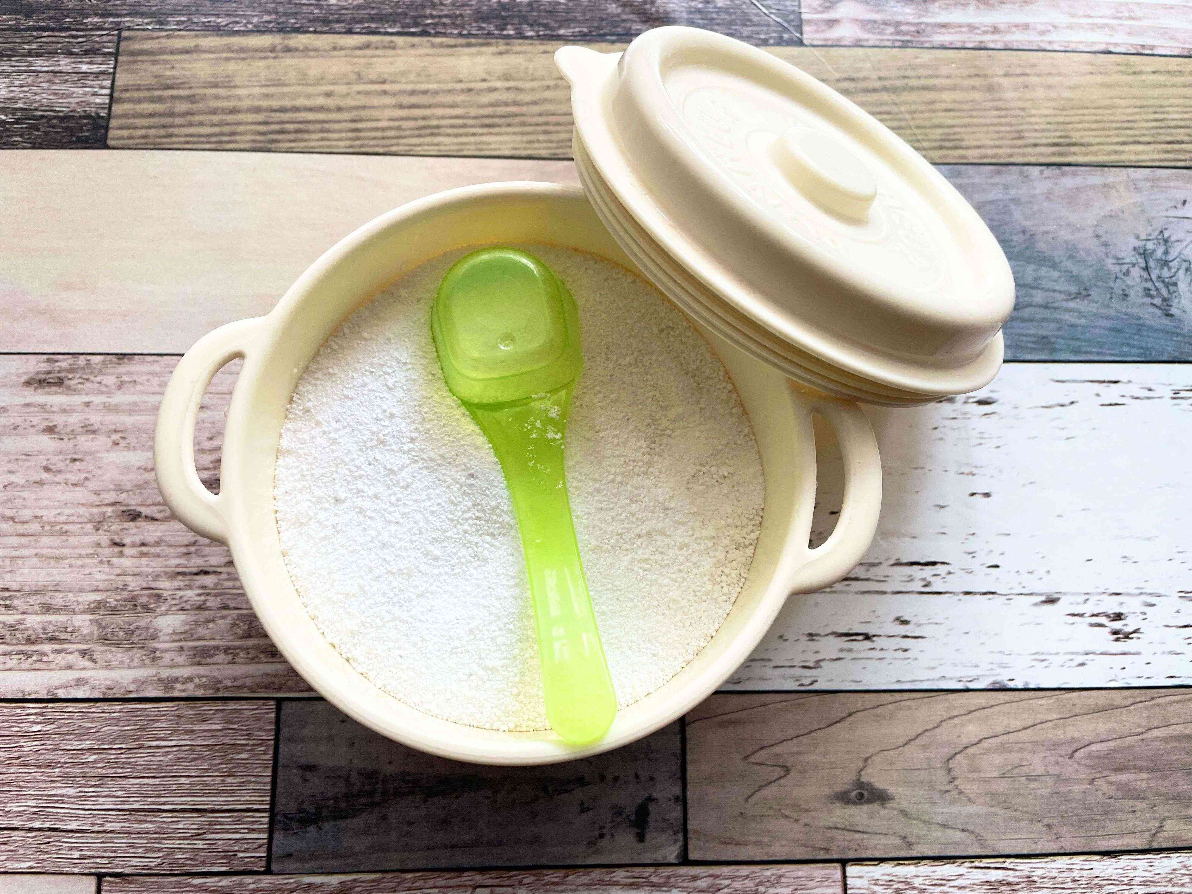 食洗機の洗剤は粉末タイプのお徳用詰め替えタイプを愛用しているというマミさんですが、そのままでは使いにくいのでプラスチックの保存容器に詰め替えていましたが、使い心地はイマイチだったそう。