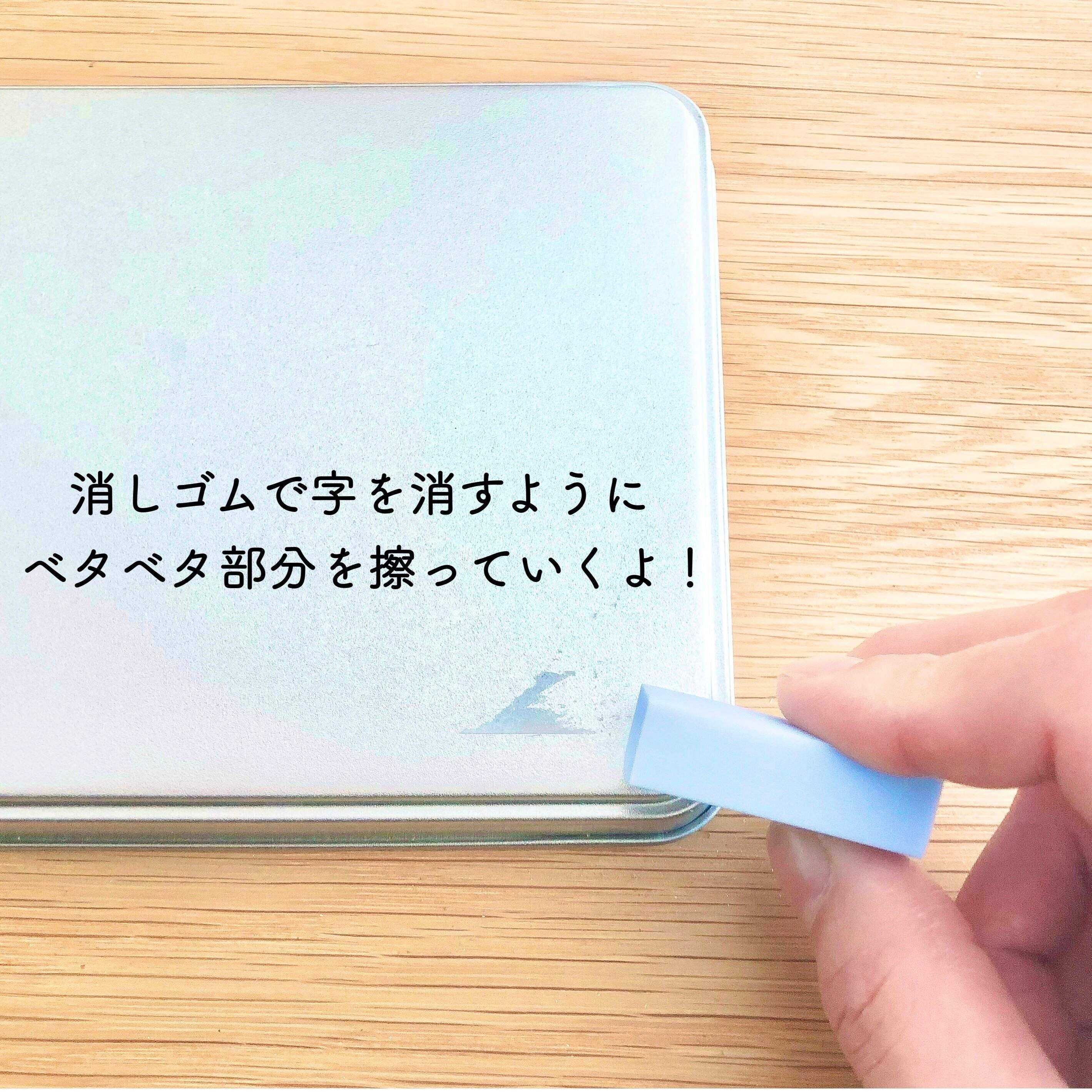 普通の消しゴムと同様、文字を消すように『シールのベタベタ消しゴム』でシールのベタベタしている部分を擦っていきます。