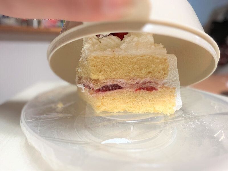 お皿に入れて上からラップをすると、イチゴや生クリームでくずれてしまいますが、これならケーキがくずれません。