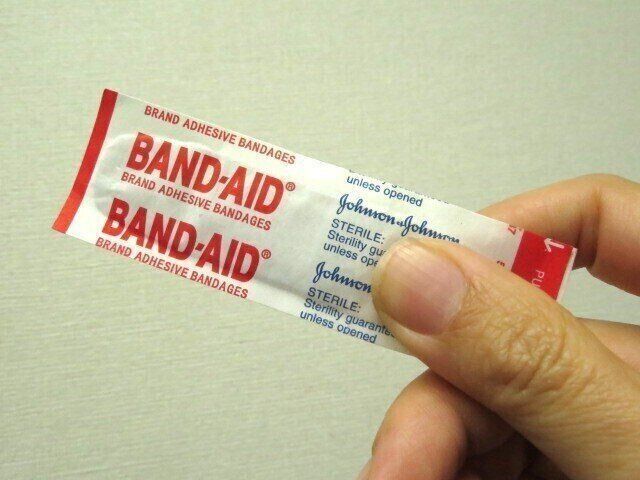 その手にあるのは「バンドエイド」と書かれた箱。