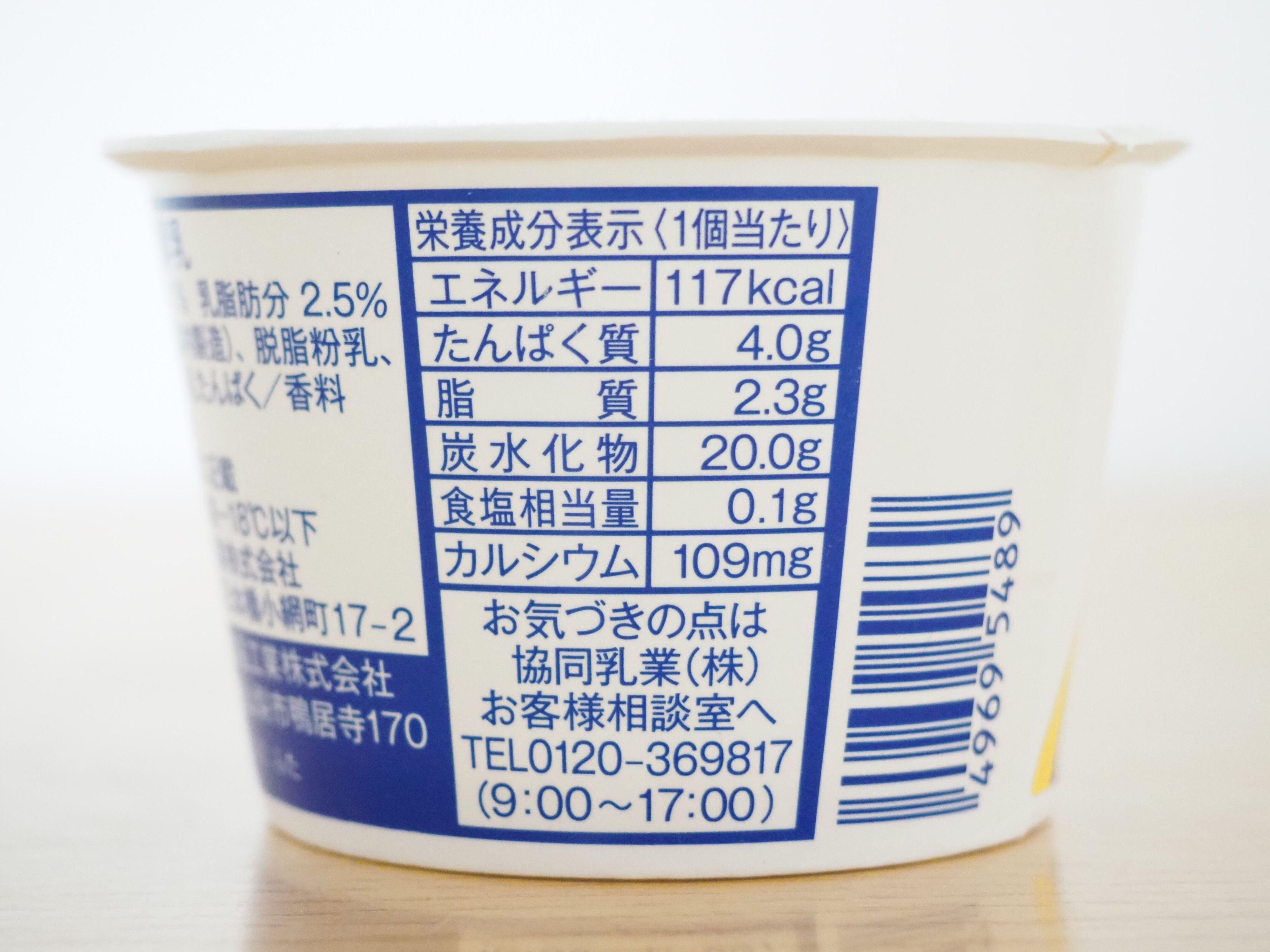 カロリーは117kcalです。乳製品だし、生きたまま菌が届くし、罪悪感が限りなく少ないスイーツとも言えそうです。