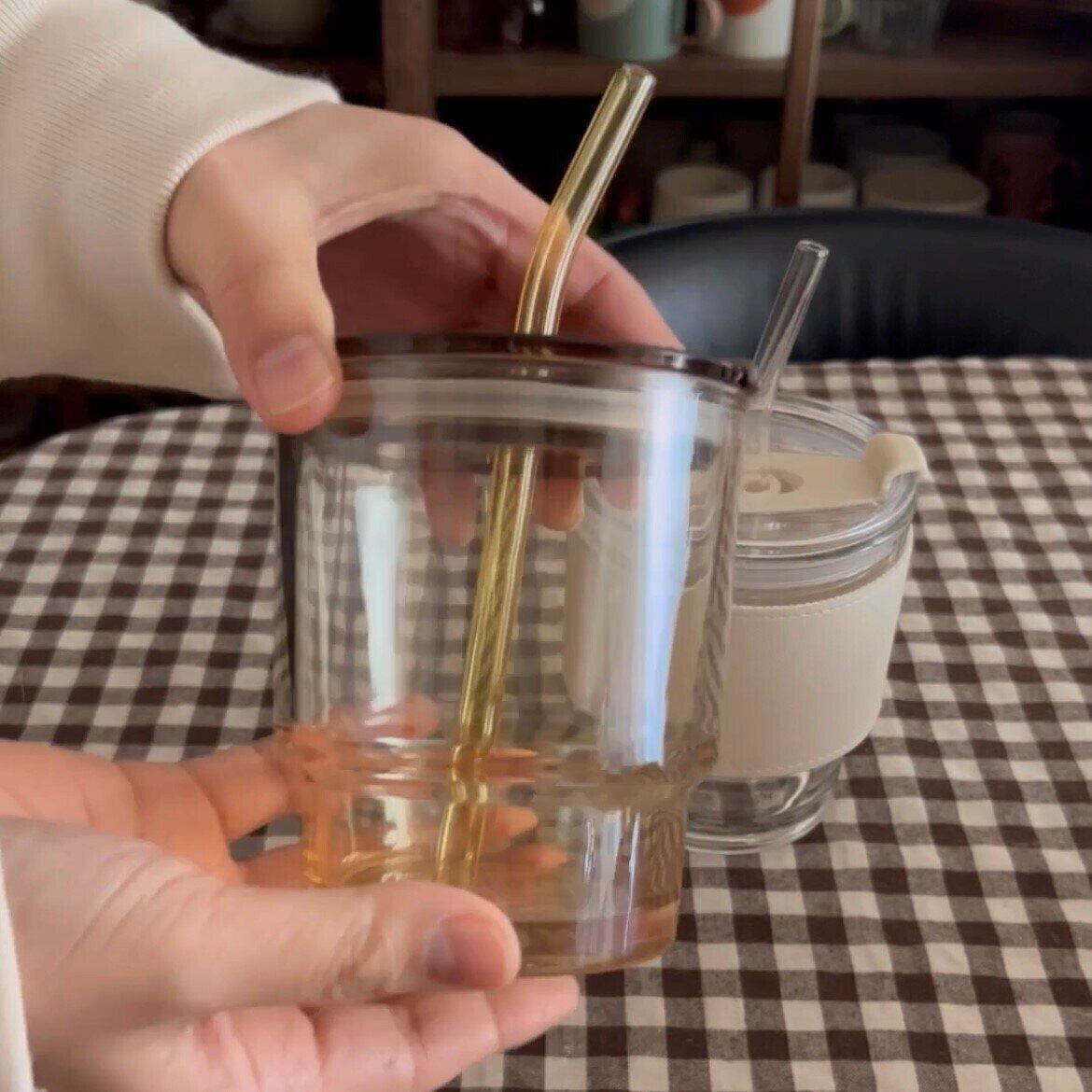 ガラスのストローがついているんです。