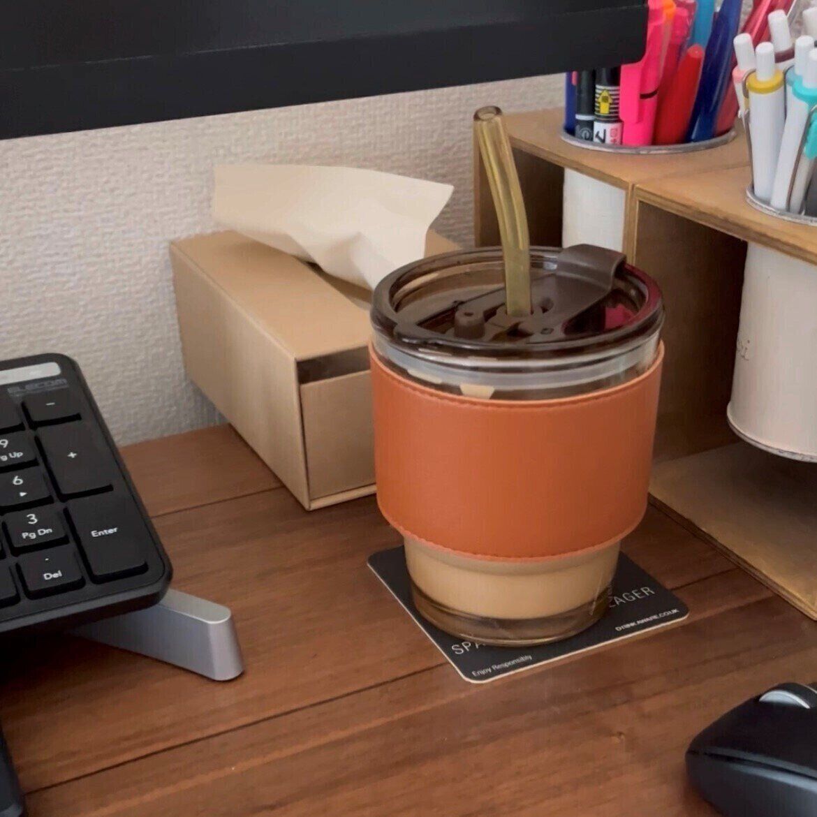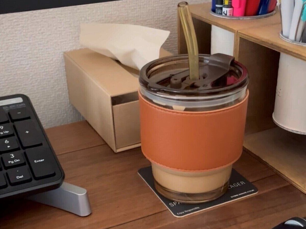 見た目がおしゃれなスリーブ付きガラスタンブラー。