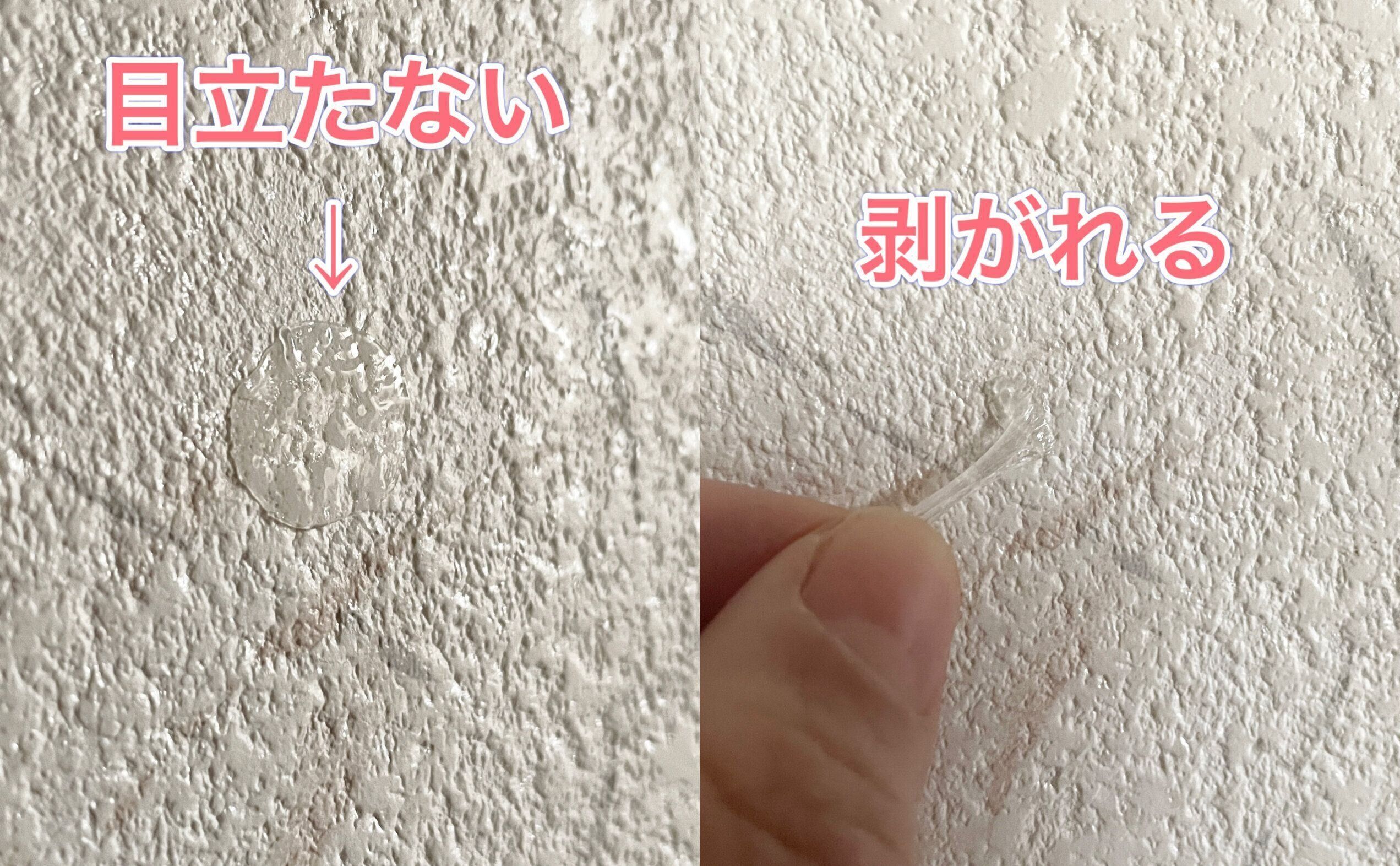 ※今回は、比較的短時間で貼って剥がしてみましたが、長時間同じところに使う場合は剥がしにくくなったり壁を傷つけたりする場合もありますので注意してくださいね。