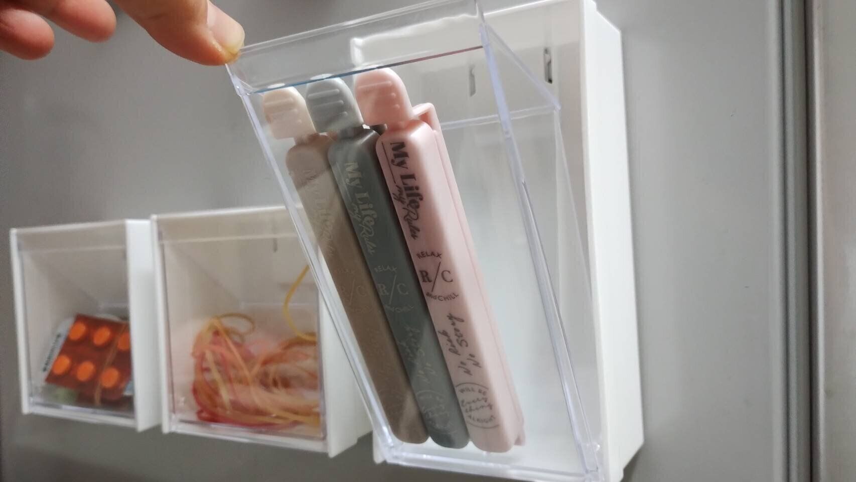 今回購入したトールタイプのマグネットスイングケースには袋どめクリップを収納しました。