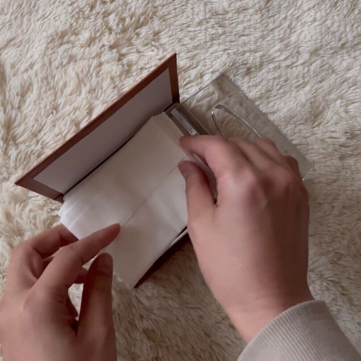 ブック型ボックスSの中にポケットティッシュを入れます。