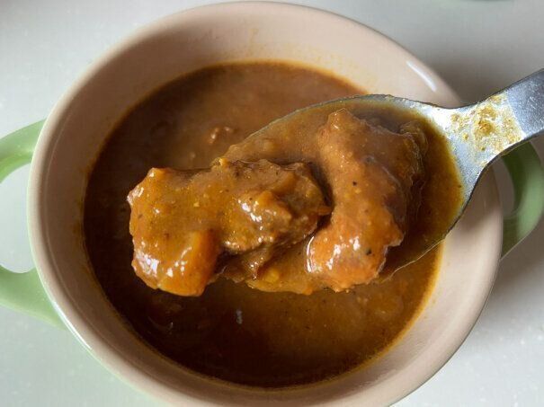 スプーンですくってみると、まずは牛肉の大きさに驚き!ごろごろっとたっぷり大きな牛肉が入っているのはうれしいですね。