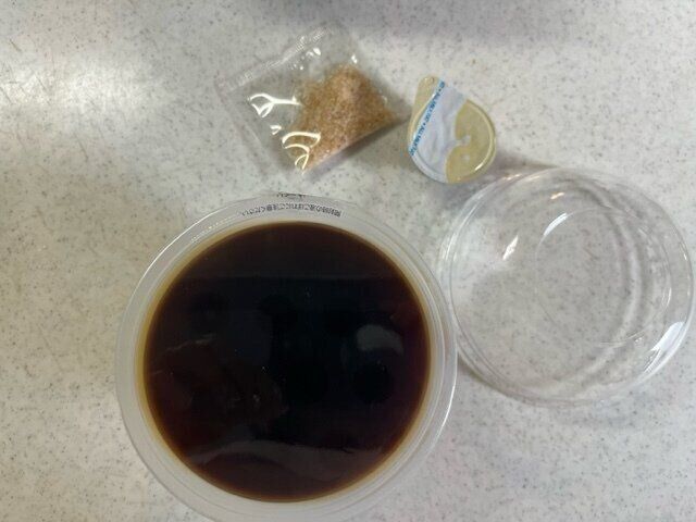 中にはとても大きいコーヒーゼリーとコーヒーゼリーには珍しいシュガーが入っています。そしてミルク。