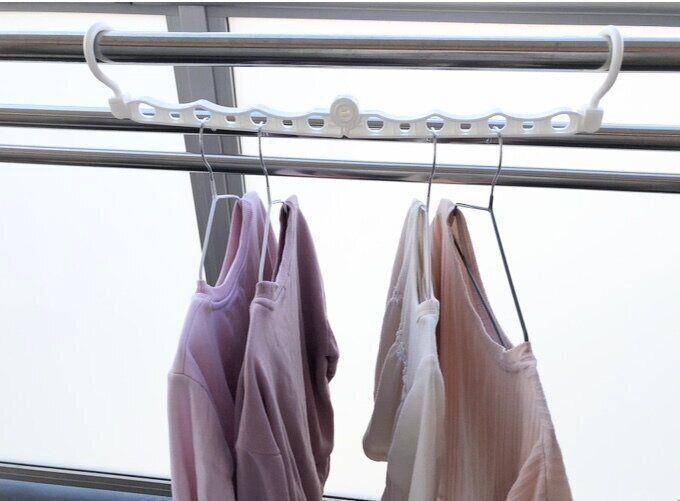 竿と竿の間を有効活用して、洗濯物を干すスペースを増やせる便利グッズなんですよ。
