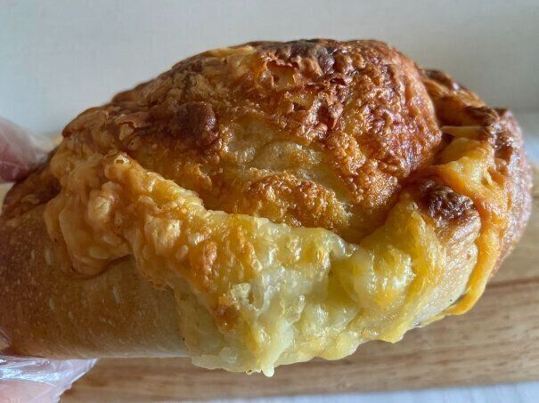 表面にたっぷりとチーズがかかったこのビジュアルもたまらないチーズ尽くしのパン、食べる前から香るチーズの香ばしさが魅力的!
