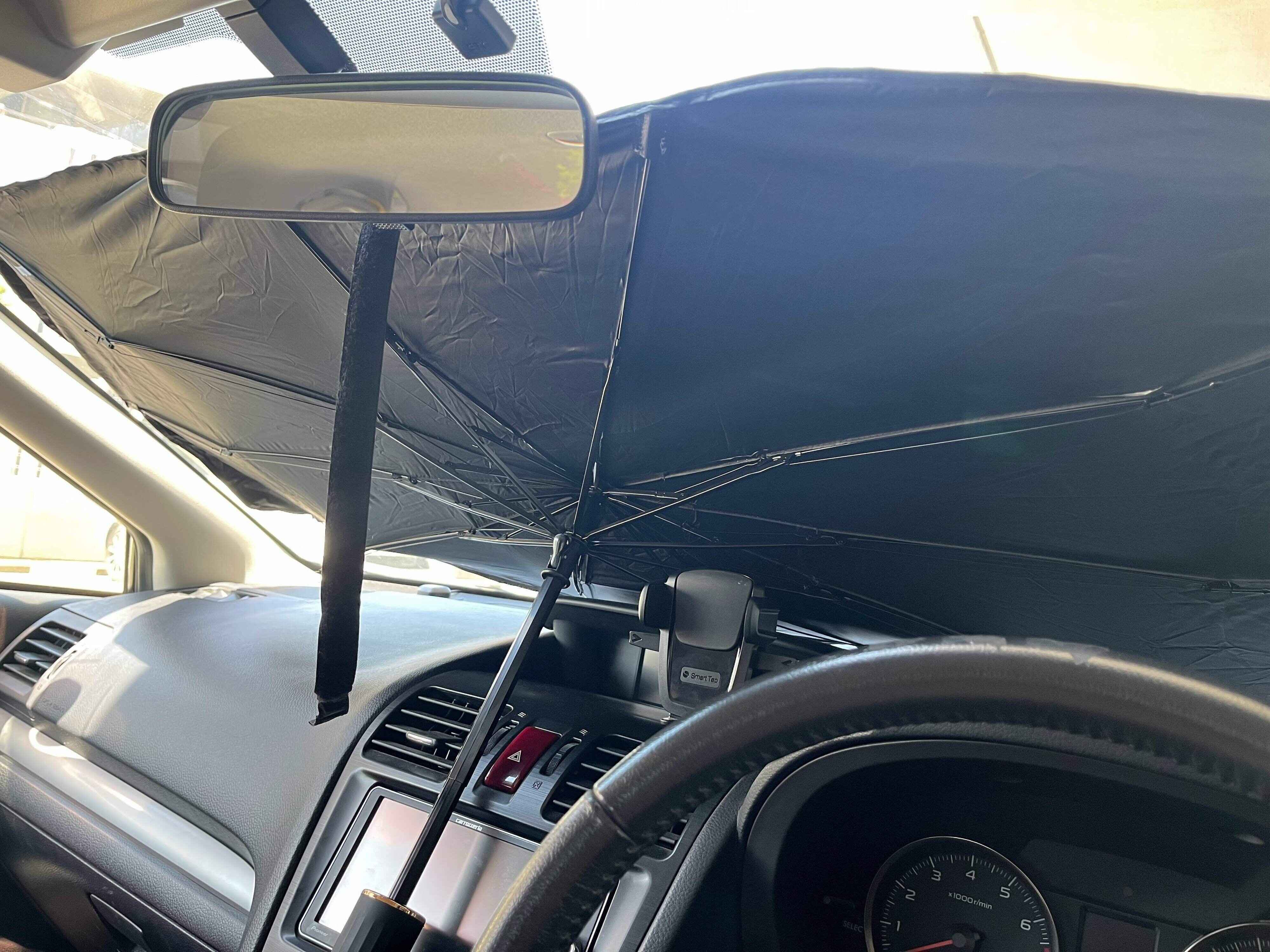 折りたたみ傘のような仕様で、開いてフロントガラスに置くだけ!