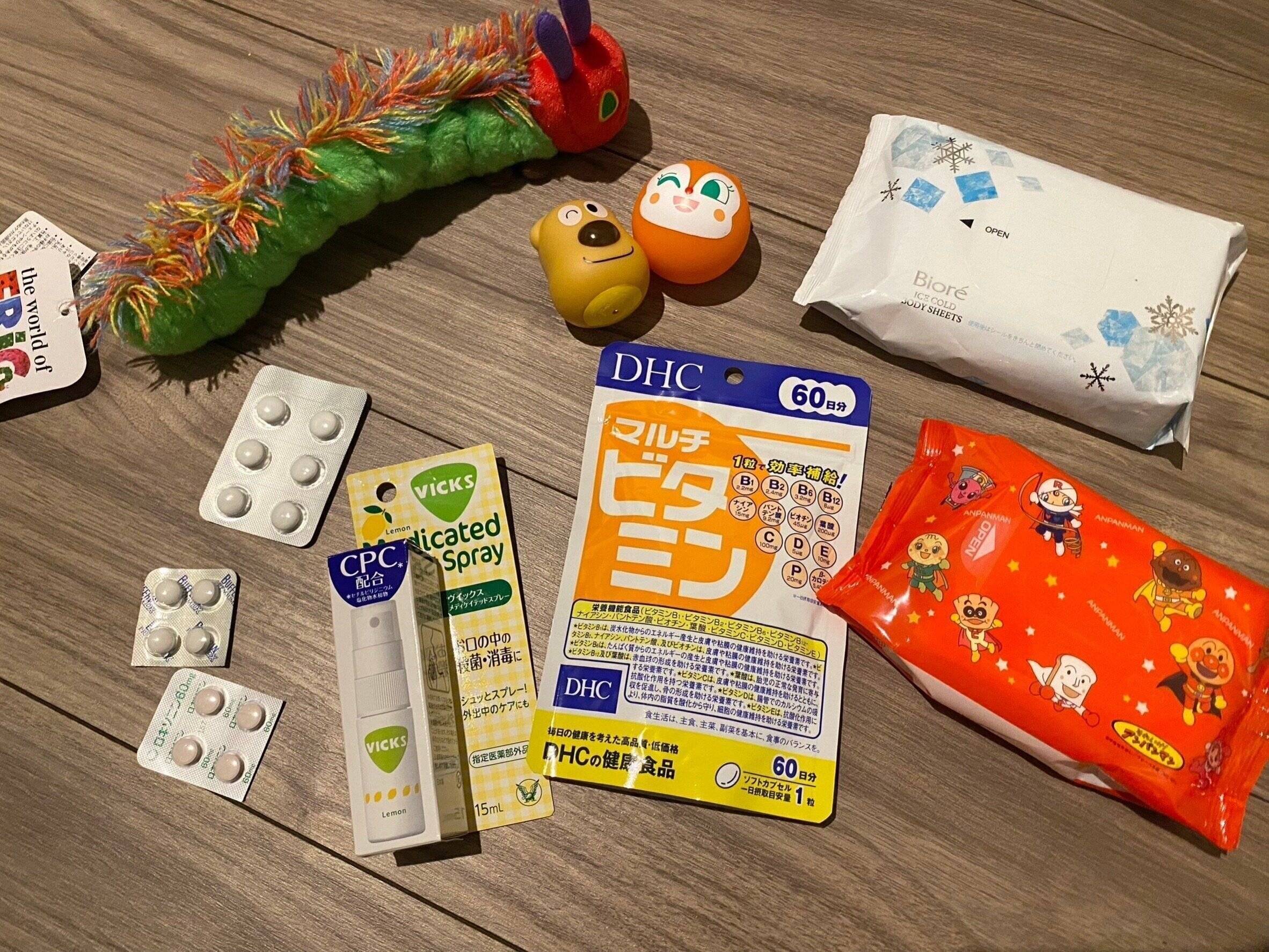 私と子どもは離れることがないことと、家にいるか車に乗っているかなので、2人分をまとめて車に入れておきます。