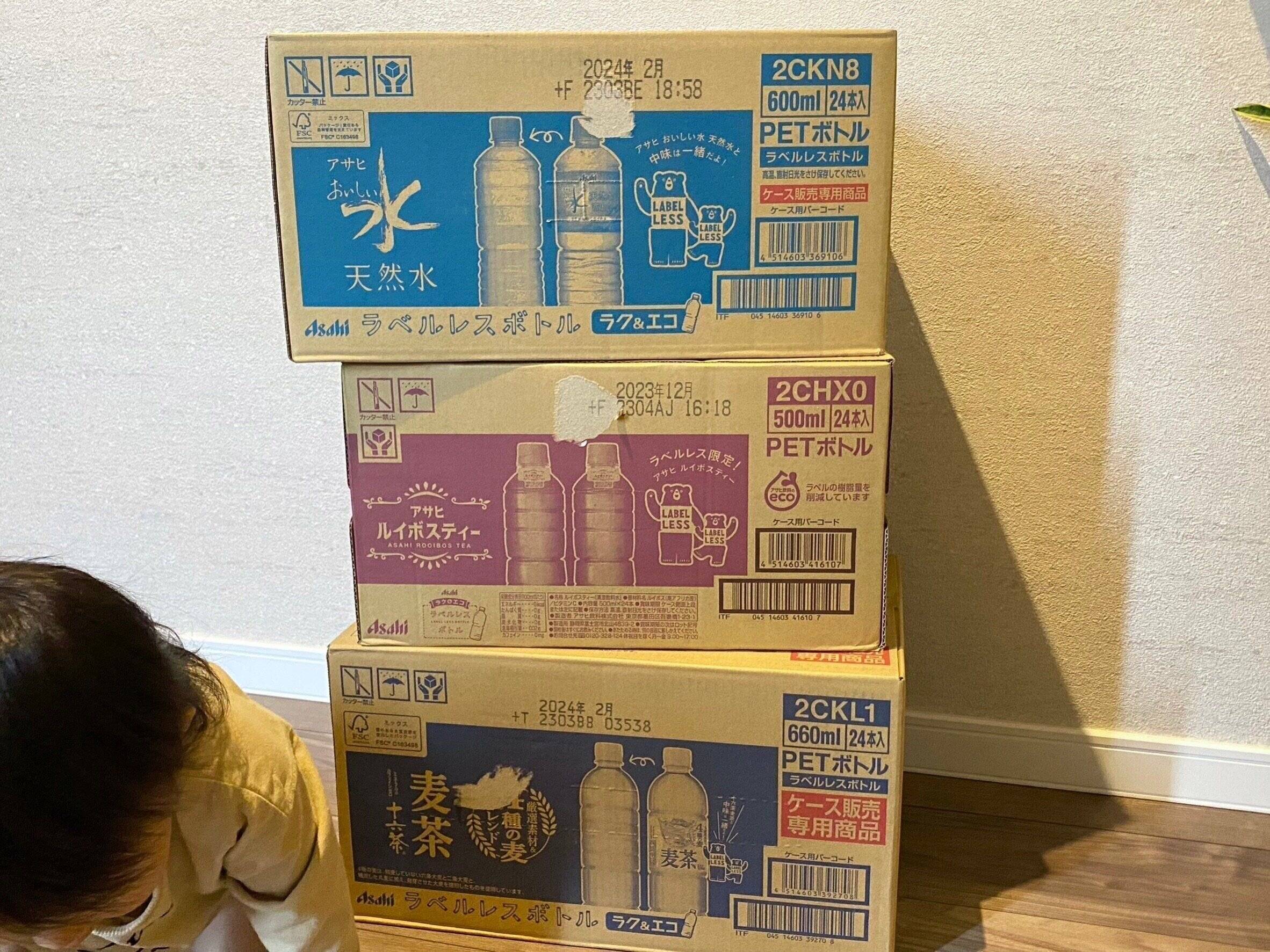とにもかくにも「水」。飲料にはもちろん、調理するにも、持ち運びもできるので600ml を1ケース追加で準備しました。