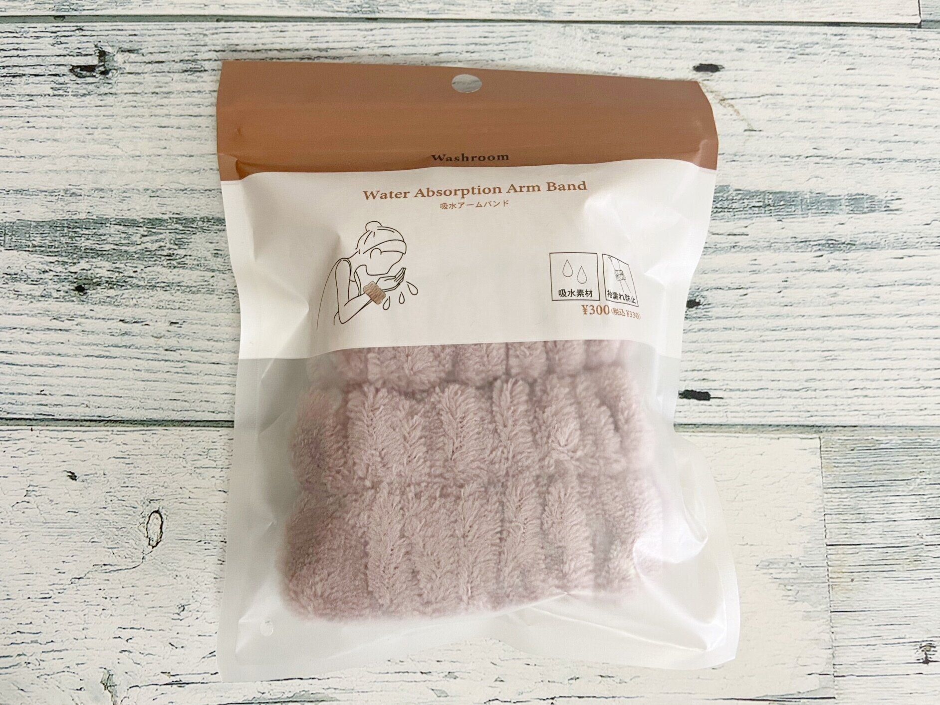 公式サイトでお気に入り登録者数5,000人超えの人気アイテム「吸水アームバンド」(330円)は洗顔時に袖が濡れない、毎日活躍してくれる便利アイテム。カラーはベージュとアイボリーの2色展開です。