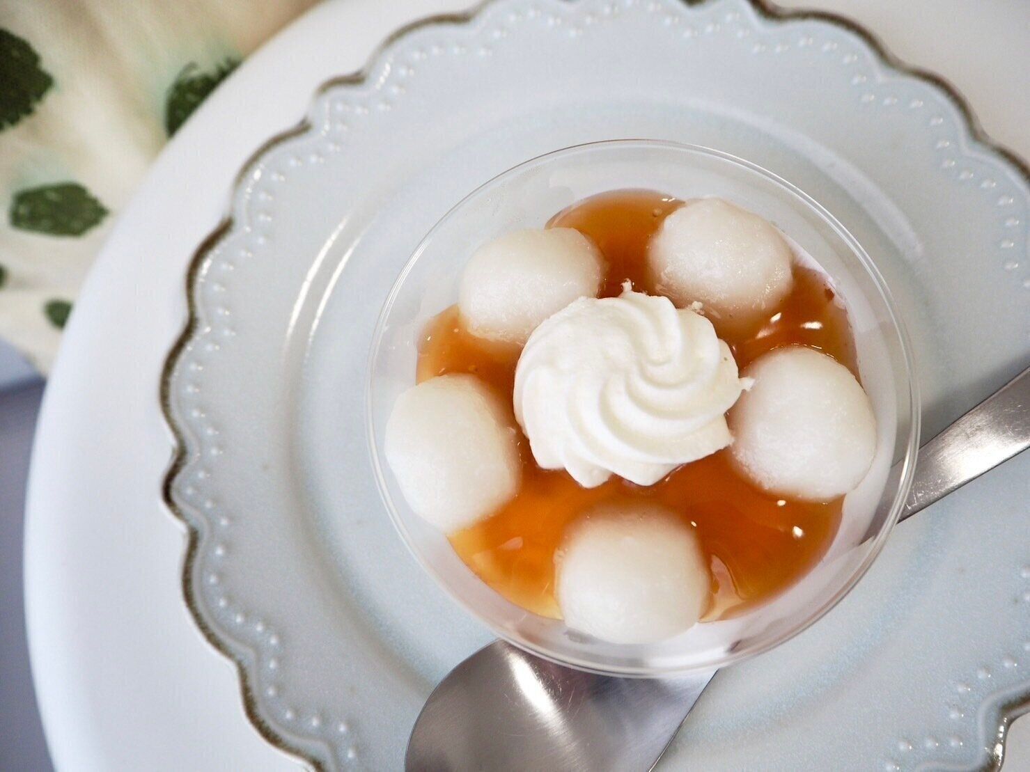 純生クリームの上にみたらしたれと団子、さらにその上にチーズクリームを絞ったという和洋折衷なカップスイーツです。