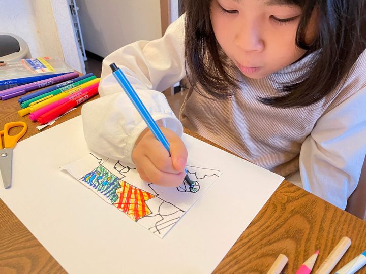 だんだんノッてきて、途中からは口笛を吹きながら絵を描いていましたよ。