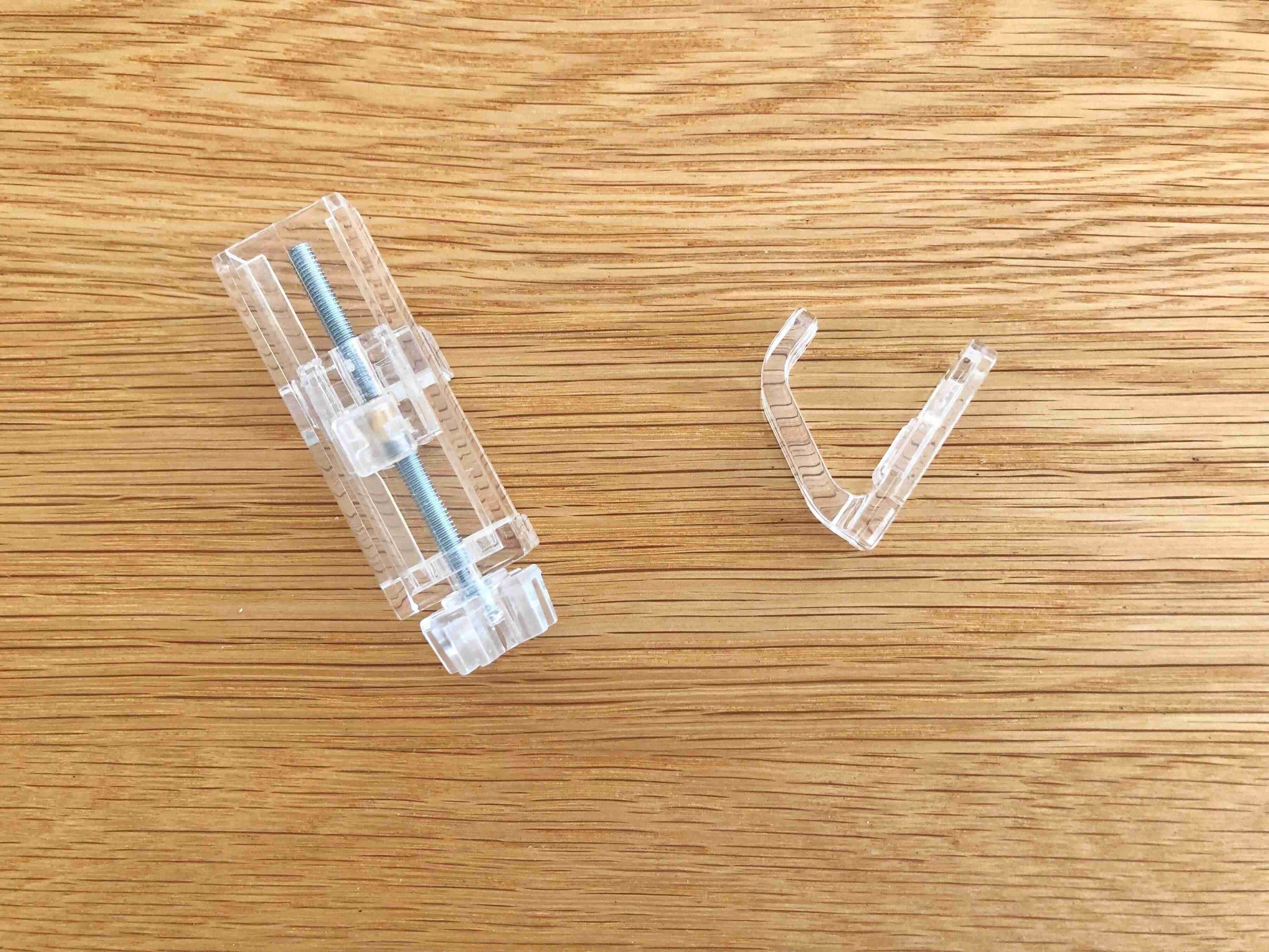 縦方向で厚みさえ合えば、家具の脚などにも取りつけられるので、使える場所や用途はかなり広がります。