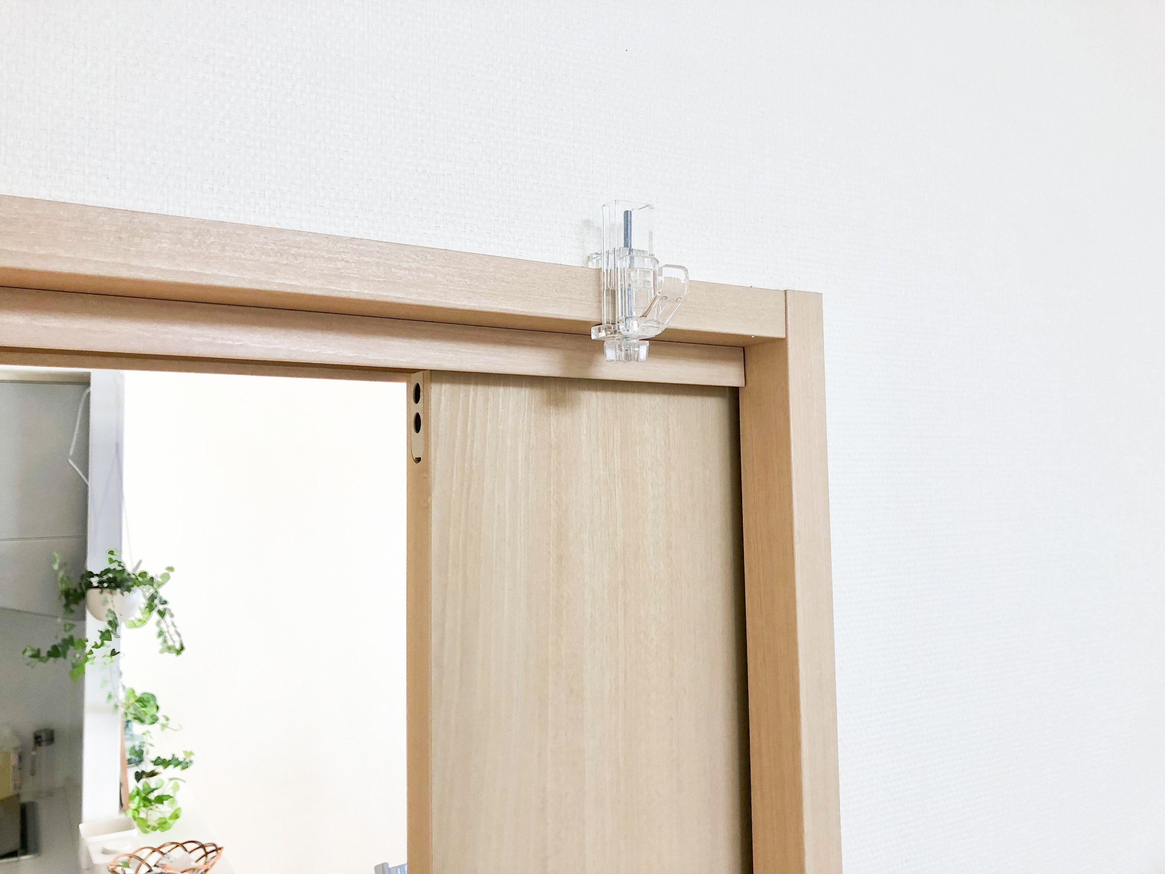 しかもいろんな場所につけ替えてもかもいやドア枠に傷がつきにくいように、取りつけ面にクッションシートがつけられているのもポイントが高い!さらに透明なデザインなので、目立ちにくいのもいいですよね。