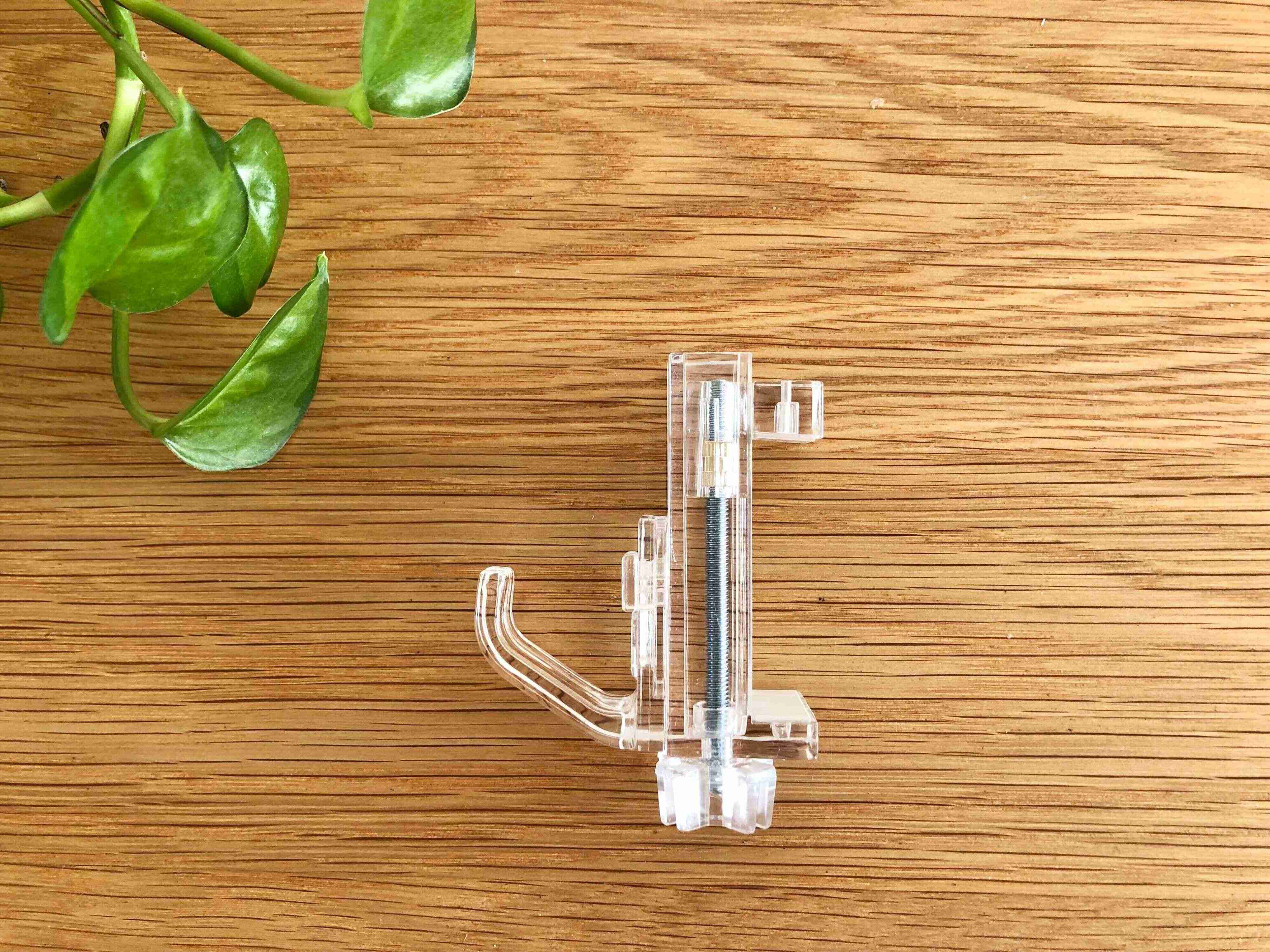 見た目も使い方もごく一般的な「かもいフック」と同じで、かもいやドア枠にはさんでからしっかりネジを回して固定して使用します。