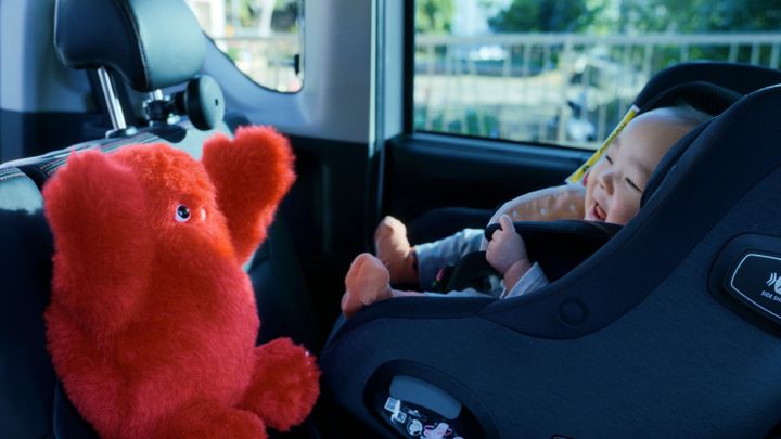 ずんぐりむっくりな愛らしい「イルヨ」は、後部座席のチャイルドシートに乗る赤ちゃんと向かい合うように設置。さらにひと回り小さい「ベビー イルヨ」はドライバーであるママパパの横にあるドリンクホルダーにセットします。