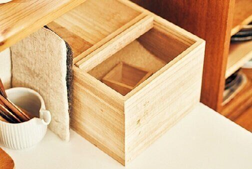 見た目もおしゃれな桐材の米びつは「東屋(あずまや)」の物。「防虫効果と調湿機能があり、開けるたびに木の香りに癒されます」。