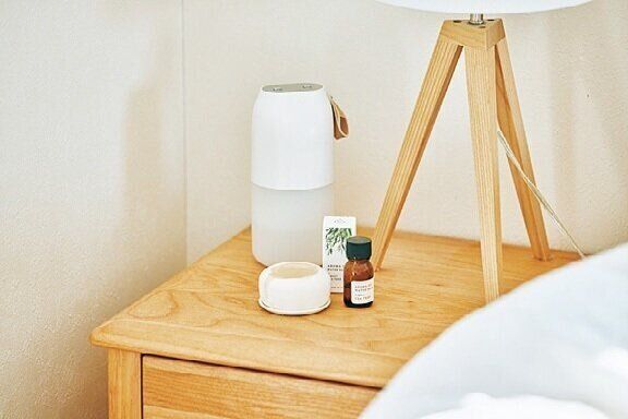 アロマグッズはシーンに合わせて選ぶと効果的。寝室には抗菌作用の高いティーツリーを、洗面所にはホーウッドやパインスコッチなど、森林の香りで気分をリフレッシュ。